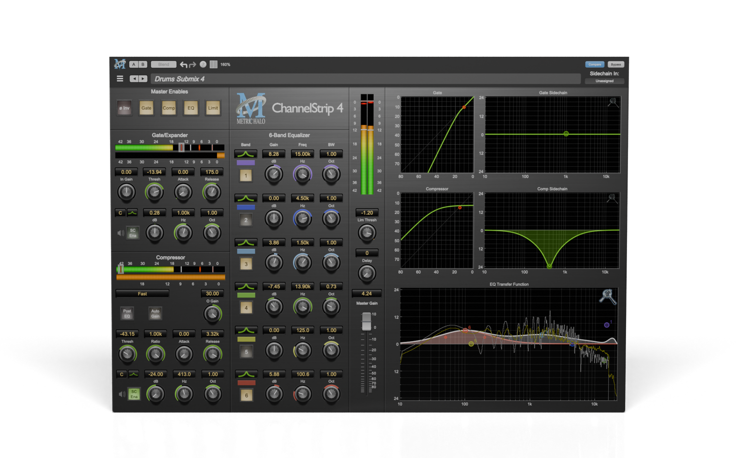 - Integrated side-chain EQ for dynamics