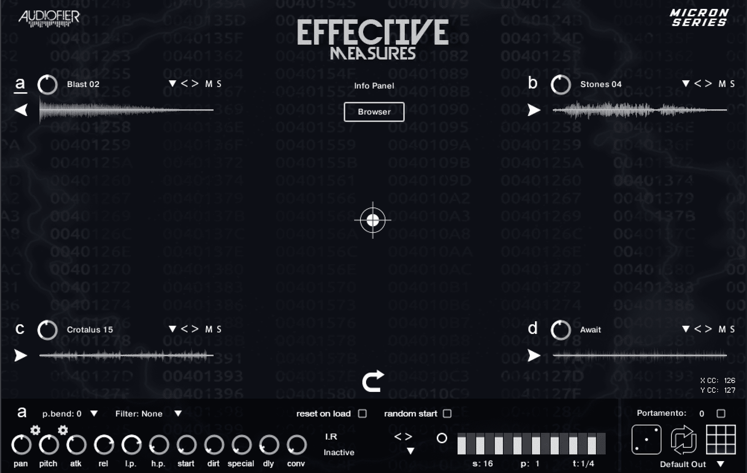 - Features include the XY pad for crossfading, individual volume, sound selection, mute/solo buttons, waveform display, and per-layer controls for pan, pitch, attack, release, low-pass/high-pass filters, sample start, “dirt” (saturation/compression/distortion), delay, and convolution reverb with over 150 impulse responses. Master controls for portamento and randomization are also universally present. All XY libraries also offer a separate output option for each of the four layers.