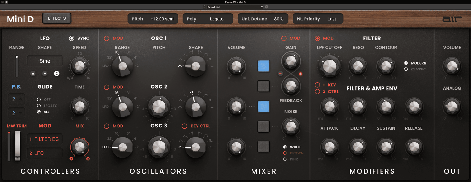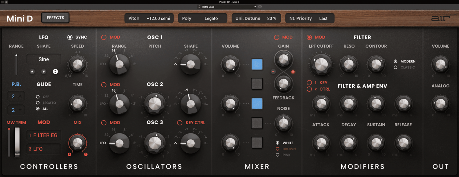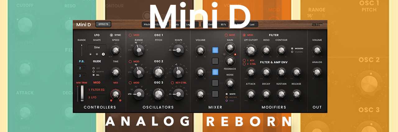 Bygget av det verdenskjente Air Music-teamet i Tyskland, vil presetene i Mini D inspirere deg! Med over ti kategorier som spenner fra bass til leads til synth FX, vil du garantert finne lyder som kan brukes umiddelbart i din neste låt eller flotte utgangspunkt for å eksperimentere og tilpasse dine egne toner.