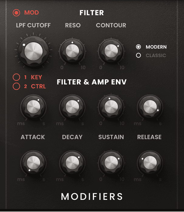 Mini D inkluderer den “klassiske” stige-stil filtermodellen med nøye oppmerksomhet på tilbakemeldingsseksjonen for å skape en virkelig bemerkelsesverdig emulering av originalen. Filteret kan knyttes til en tastestart eller en annen mod-kontrollkilde for lyder som morfer og sveiper over tid, og skaper umiddelbar energi i lyden din. I tillegg til Ladder-filteret inkluderer Mini D synth også et “moderne” stilfilter som emulerer den nyere stilen av tilbakemeldingsfiltre for å gi synthlyden din en mer moderne vibe.