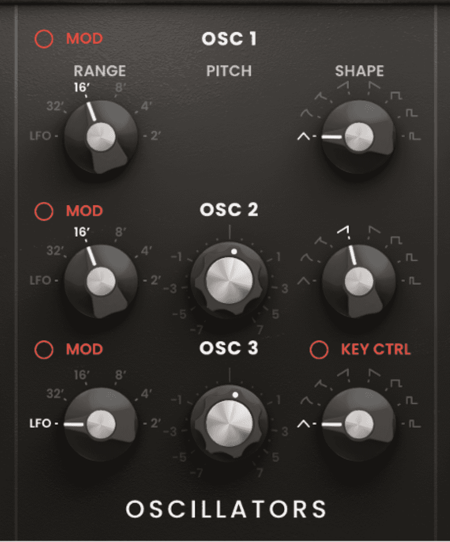 Med 8 autentisk modellerte oscillatorformer er Mini D synth en kraftpakke av rik, levende tone. Stable tre oscillatorer per stemme (maks 4 stemmer) med pitch detune på stemme 2 og 3 for å lage massive pads, drone-basser eller skjærende leads. Hver oscillator kan dedikeres som en mod kilde og inkluderer tradisjonelle bølgehøydeområder fra 32'-2'.