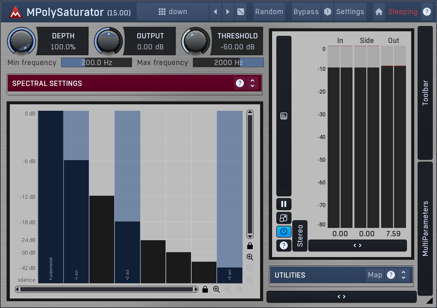 MPolySaturator er en unik spektral saturasjon plugin, som genererer harmoniske for hver enkelt frekvens i signalet ditt, noe som gjør at resultatene høres rikere ut.