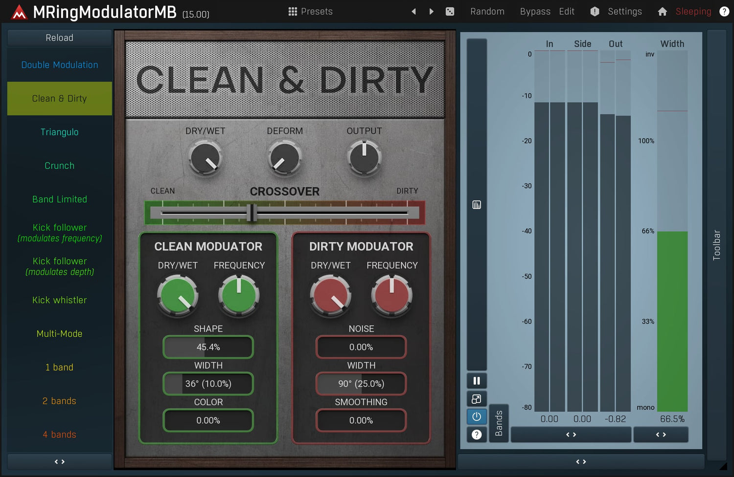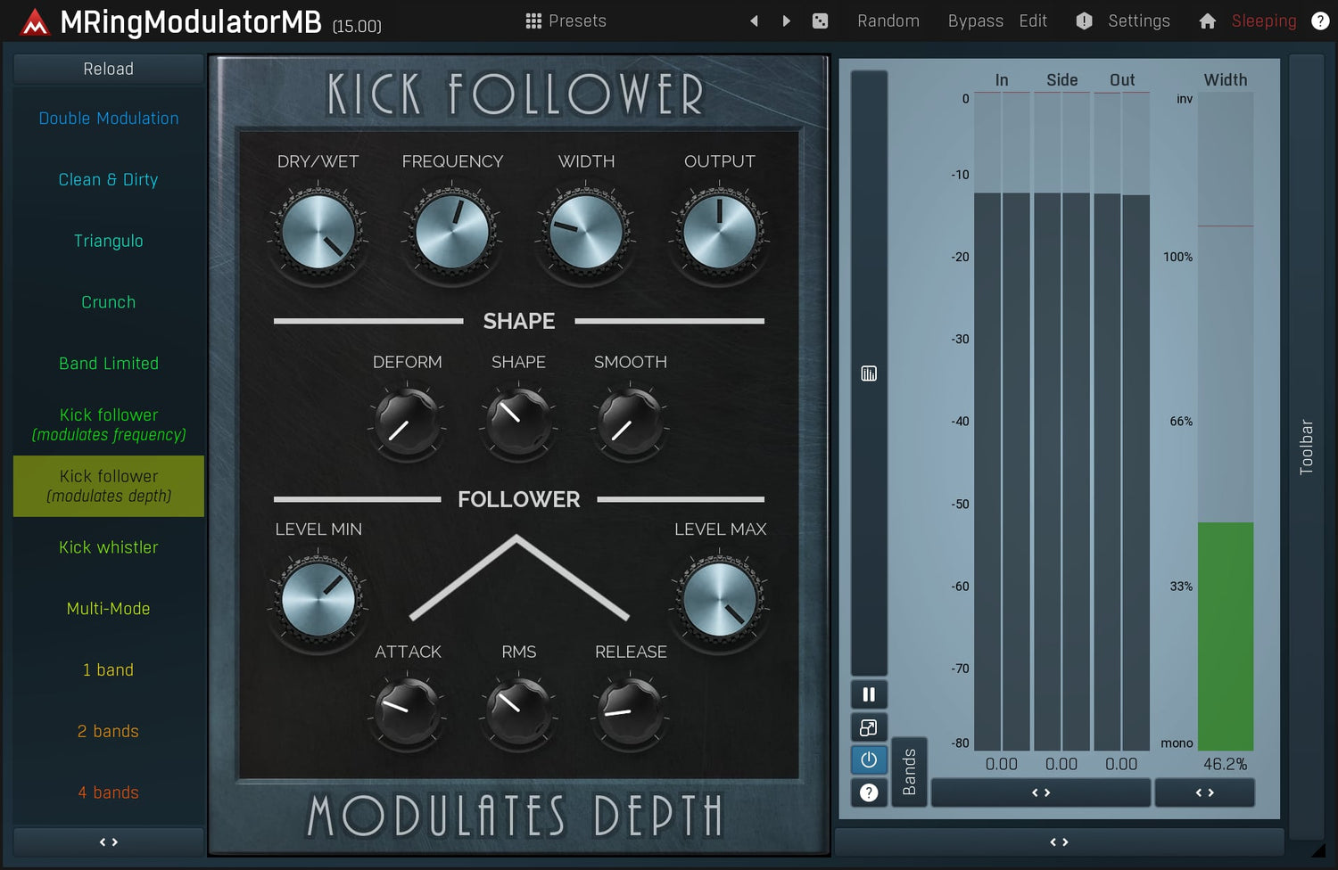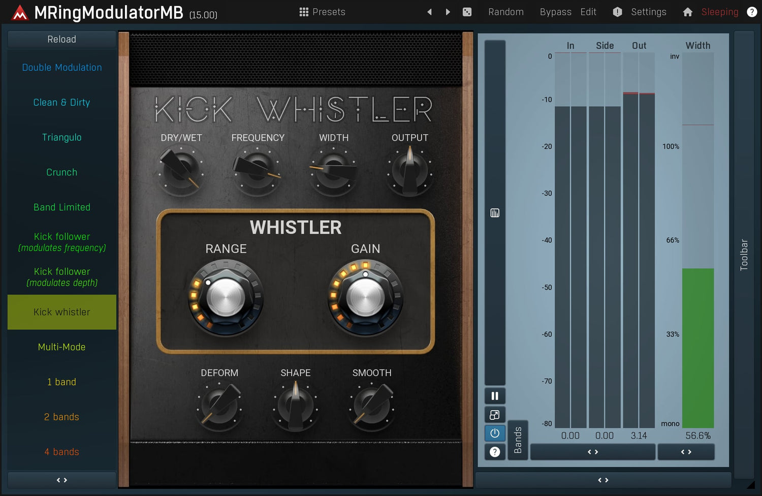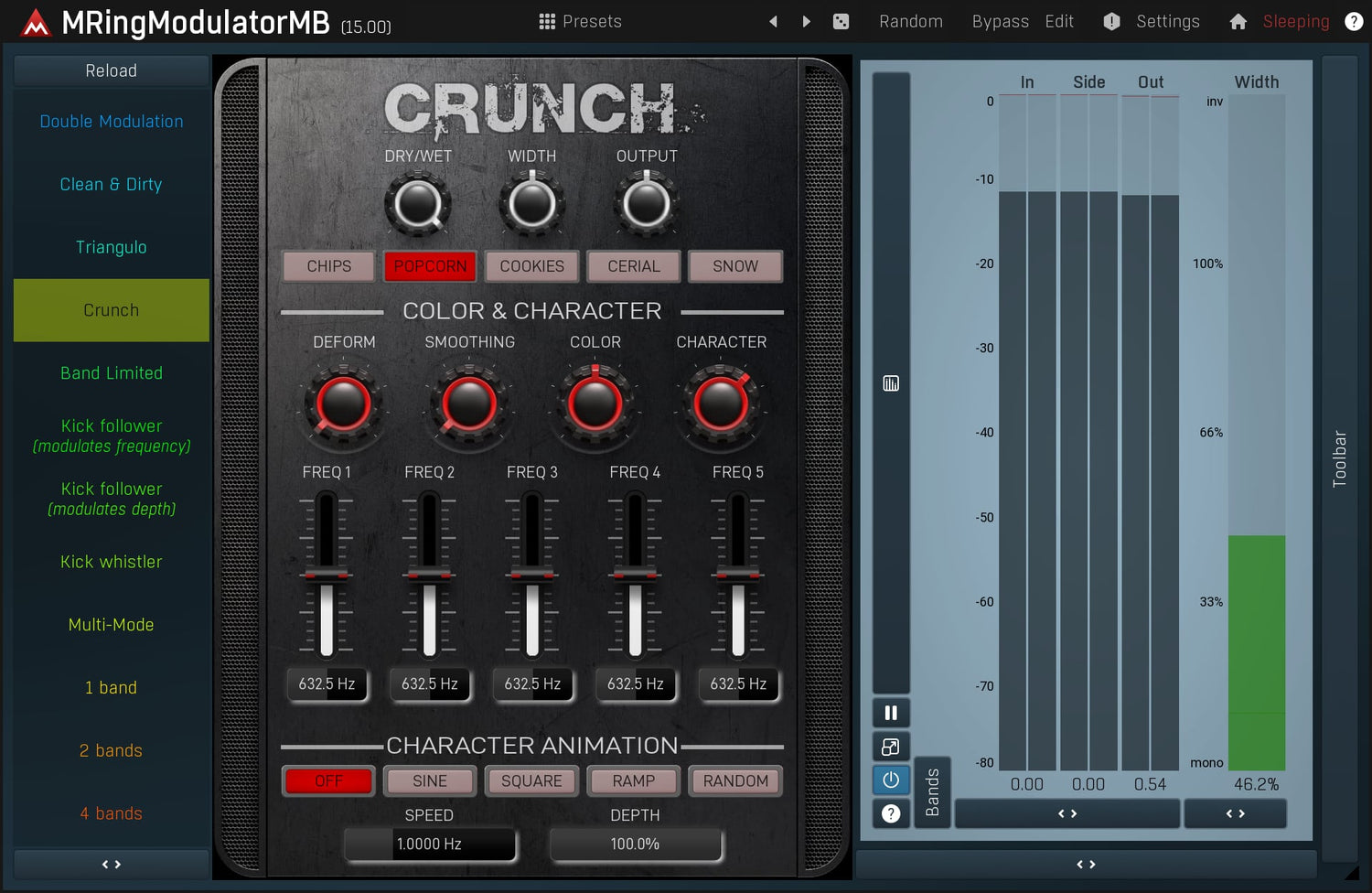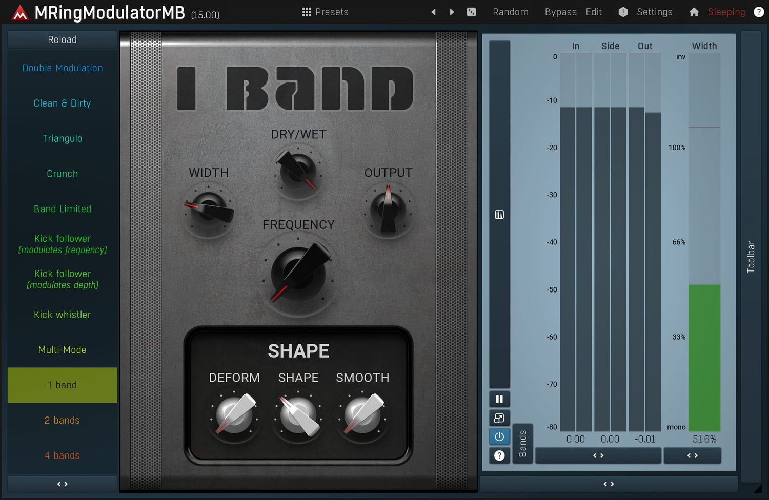 MMultiBandRingModulator er en svært avansert ringmodulasjonseffekt, som på grunn av sin multiband-natur er svært egnet for mange typer lyd.