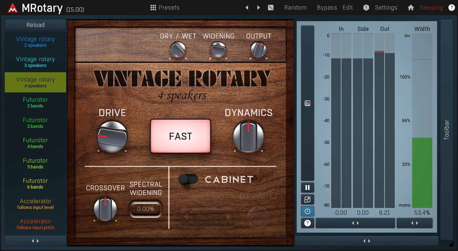 MRotary er den ultimate rotary-simulatoren, som kan levere ikke bare den fantastiske vintage-lyden, men også futuristisk algoritmisk lyd med opptil 6 høyttalere samtidig.