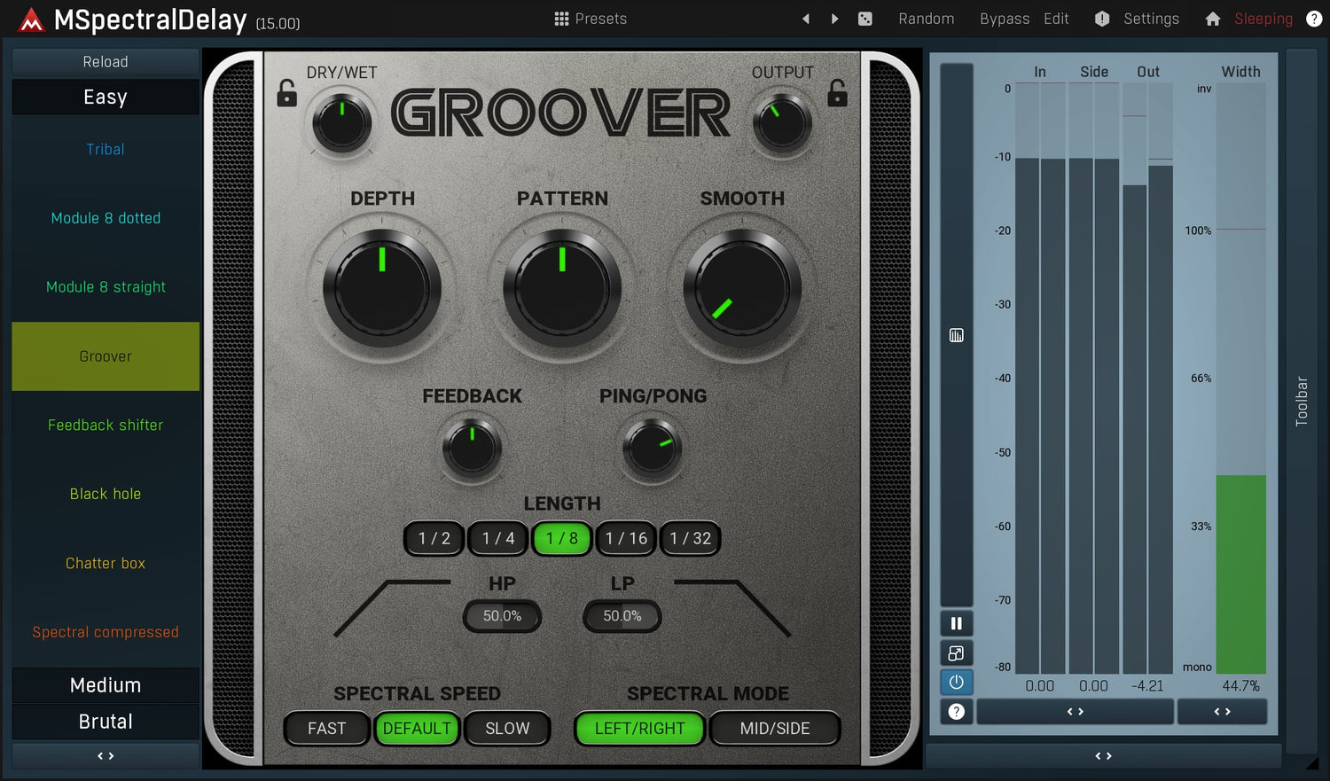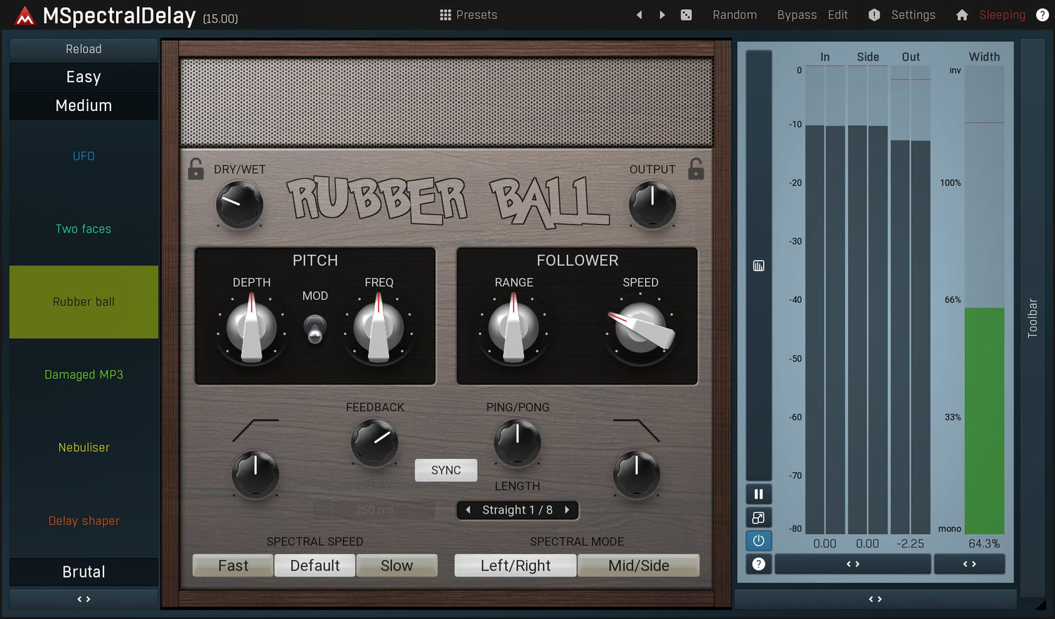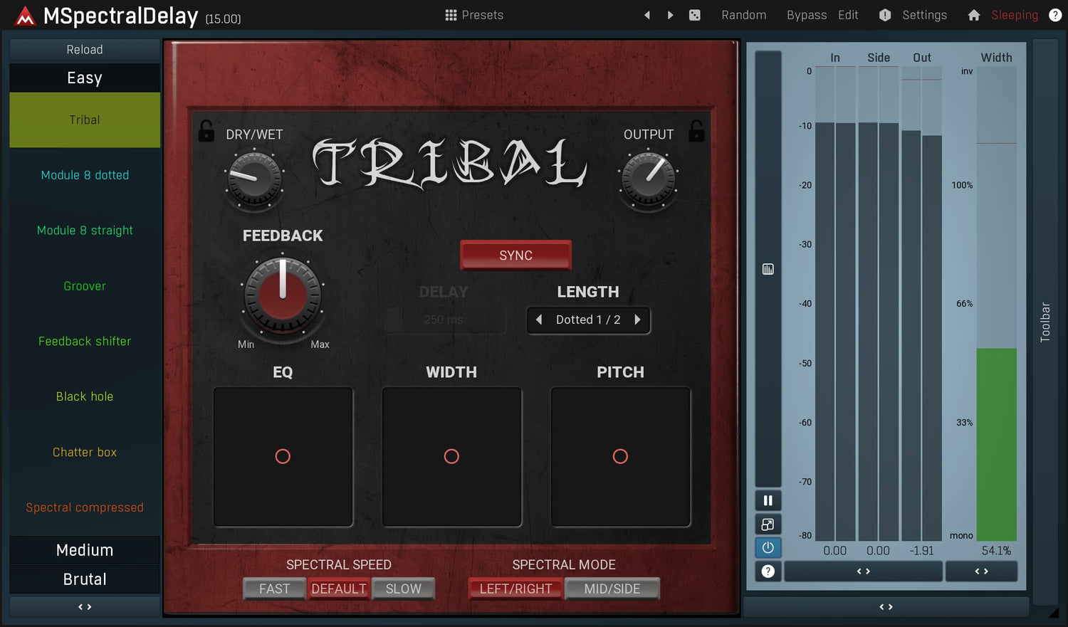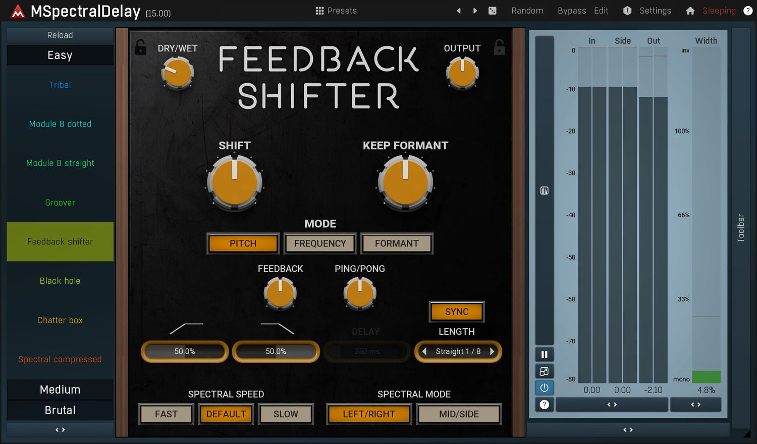 MSpectralDelay er et unikt kreativt delay-plugin som arbeider i det spektrale domenet og lar deg utføre ulike transformasjoner på det forsinkede signalet - fra å endre tonehøyde til vilkårlig å transformere individuelle frekvenser.