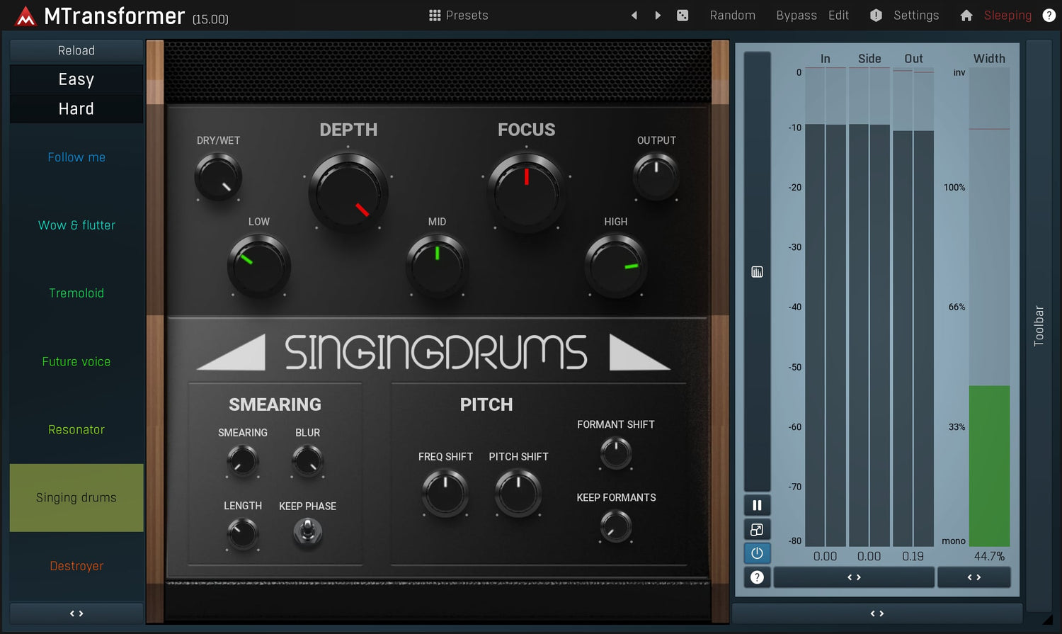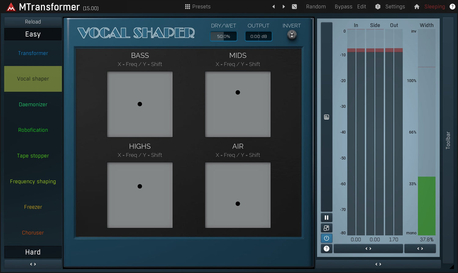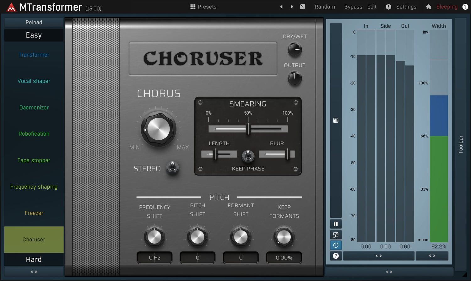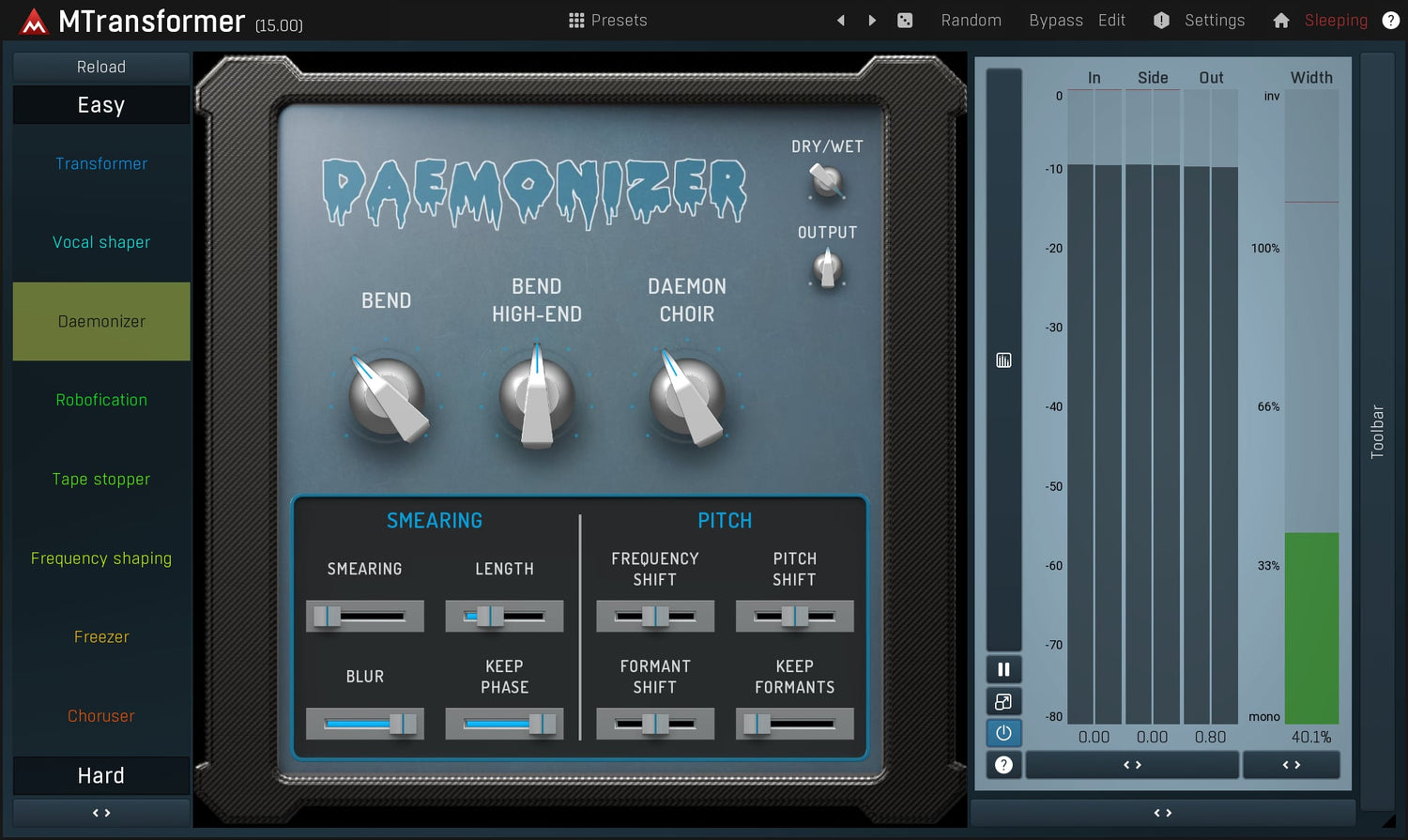 Pitch shifting, frequency shifting, daemonic and robotic voices... that's MTransformer, en unik spektalprosessor som lar deg transformere enhver frekvens til en annen, transformere nivåene deres.