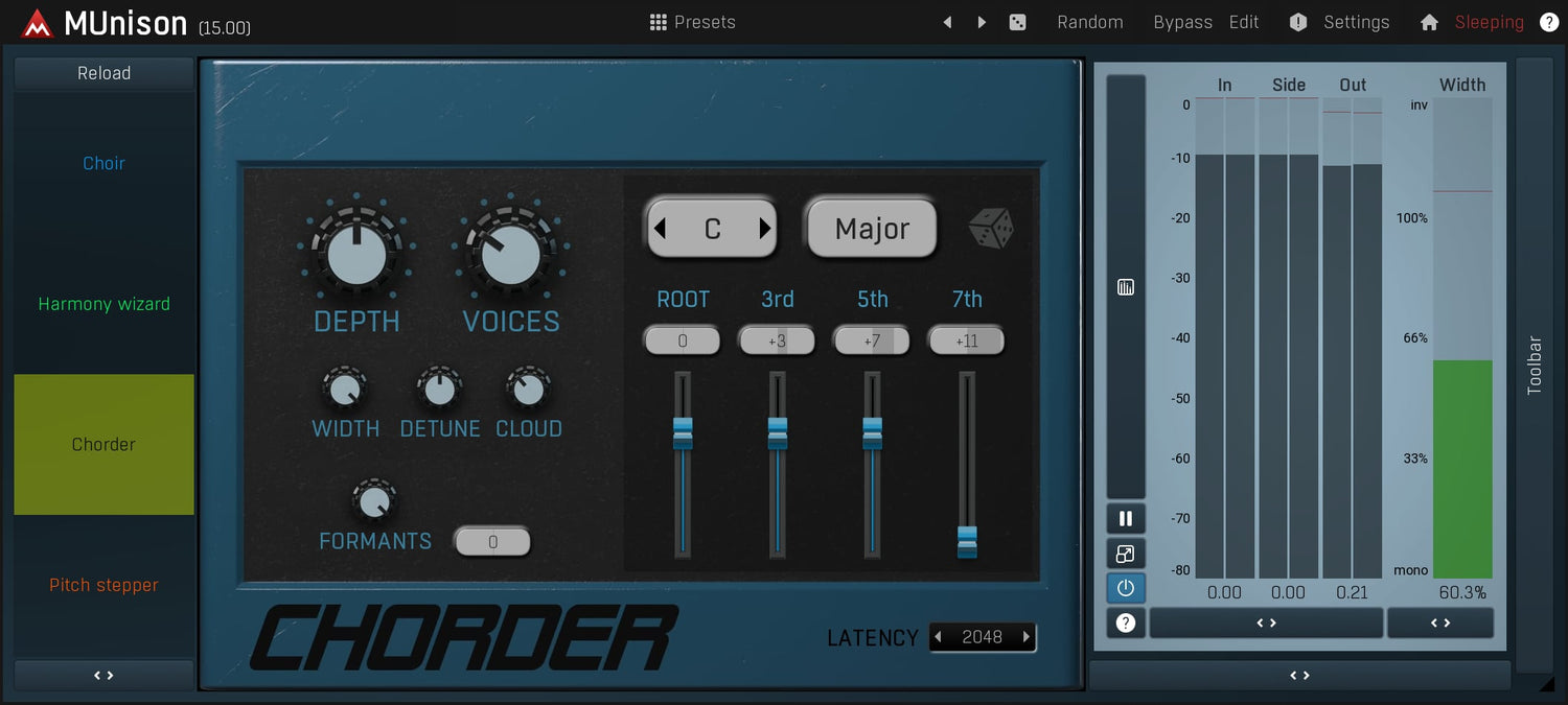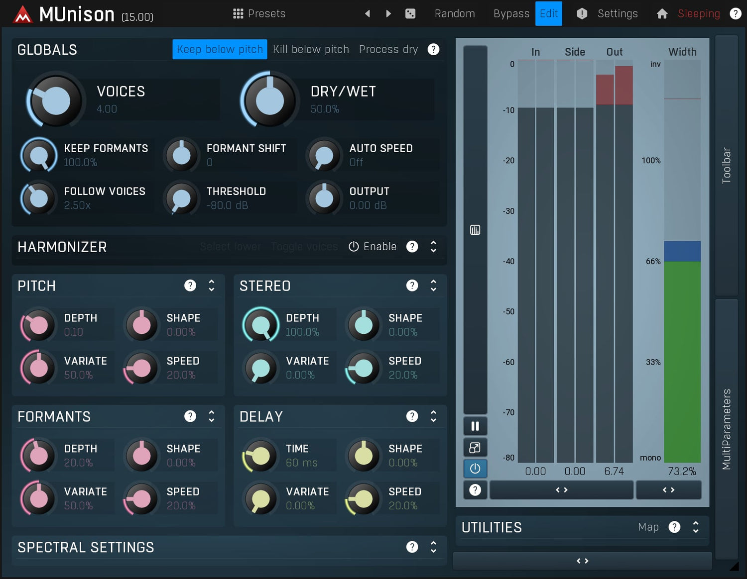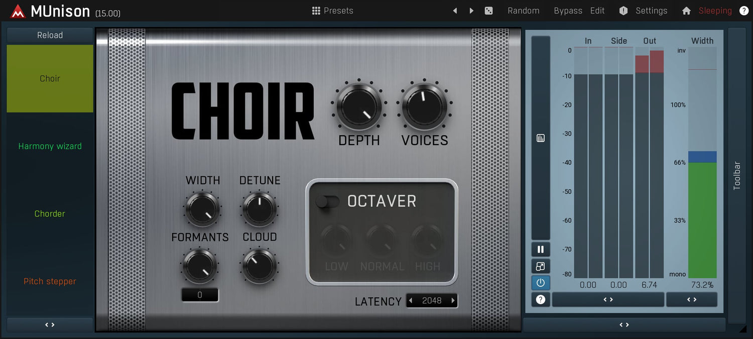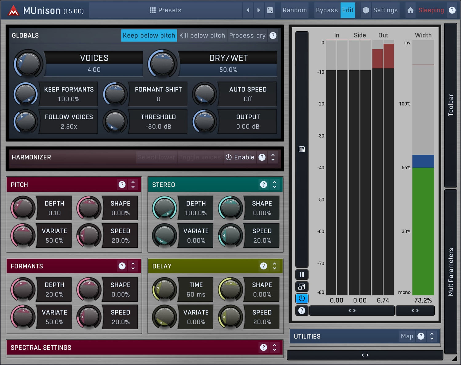 MUnison er en unik kombinasjon av doubler/unison og smart harmonizer. Den lar vokalene dine høres ut som et orkester med automatisk skalerte harmonier, produserer klassisk double-tracking-effekt og mye mer.