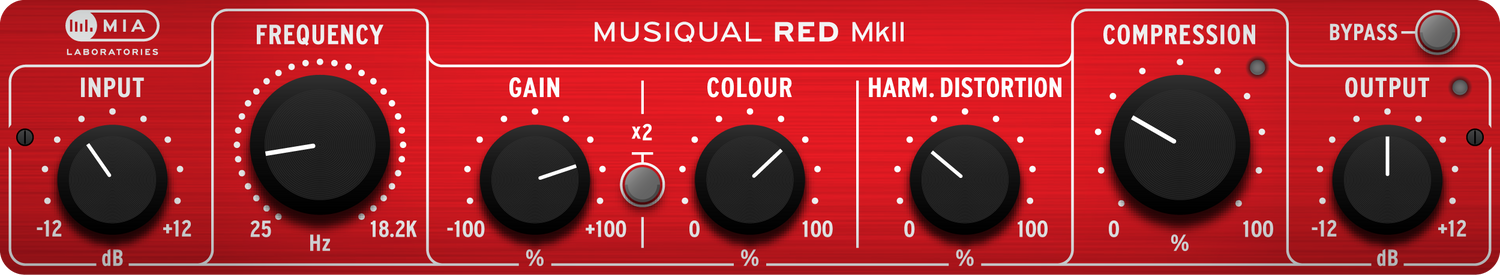 Musiqual Reds Compressor er spesifikt justert for å komplementere rørkarakteren til denne enheten. Den har faste angreps- og slippinnstillinger og gir enkel kontroll over mengden komprimering som påføres lyden.