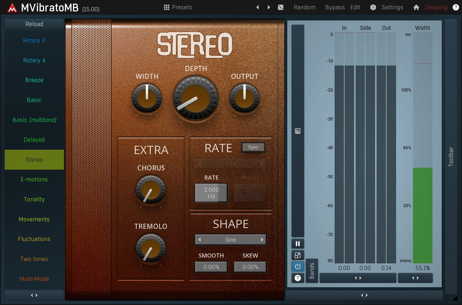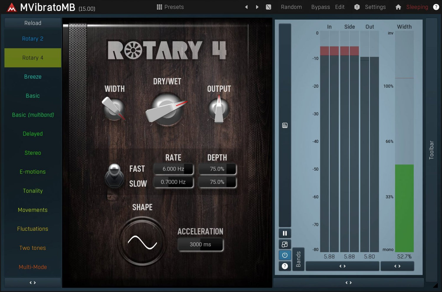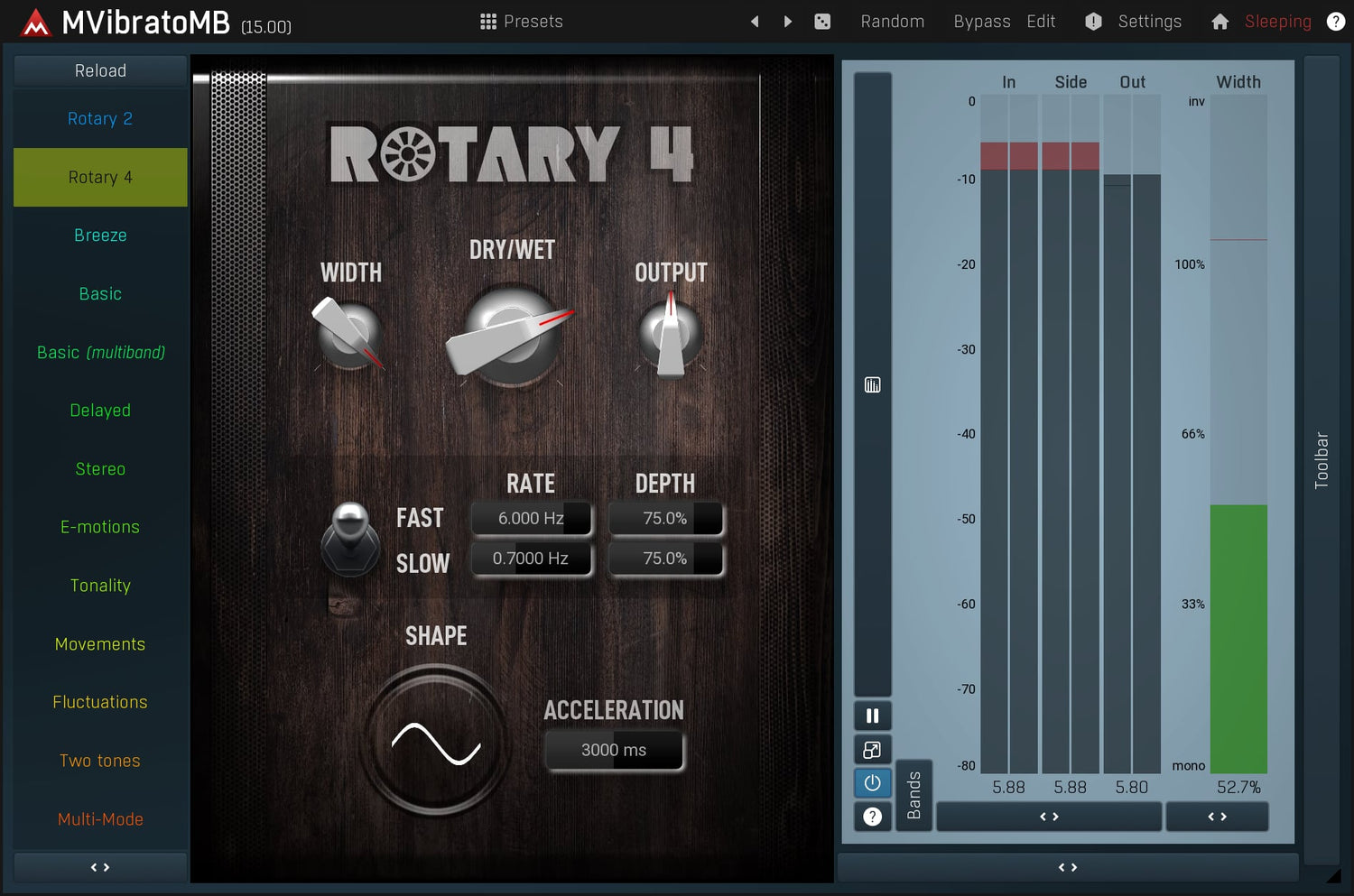 MMultiBandVibrato er også en kraftig rotary simulator, som er perfekt for alt fra orgler til gitarer.