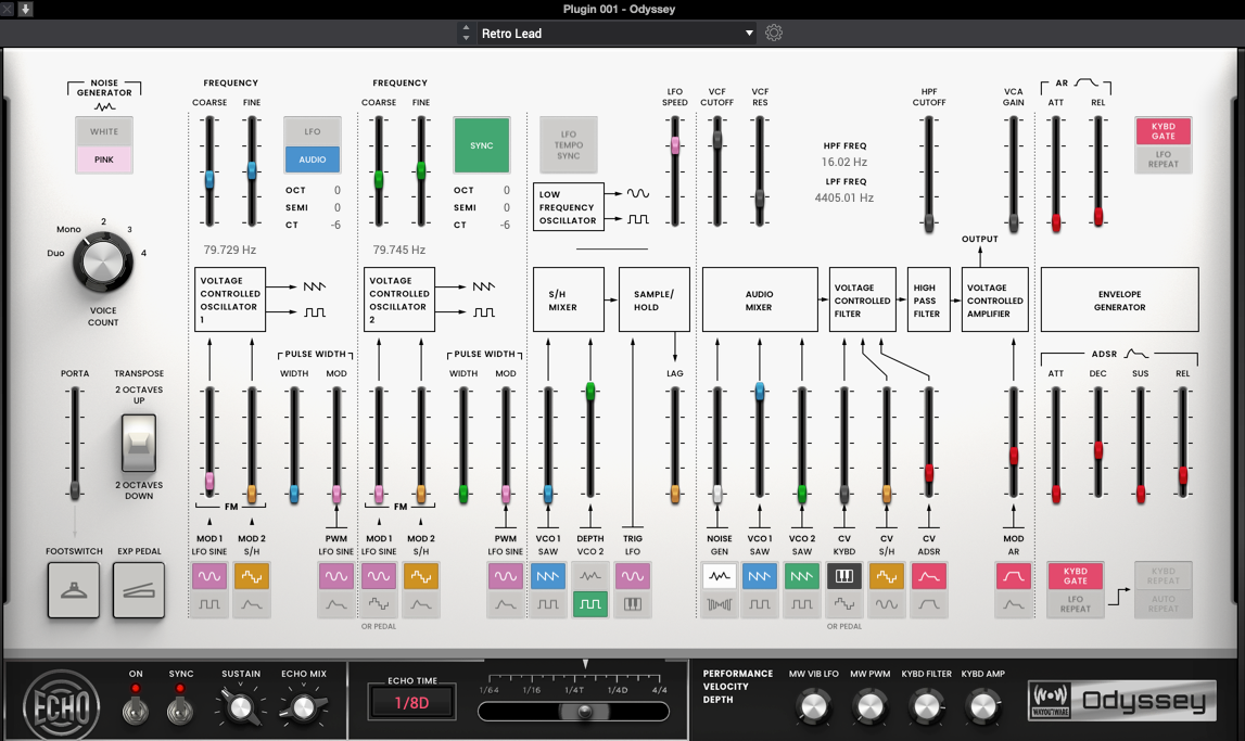 WayOutWare, som bygger på denne arven av ARP-emuleringsutmerkelse, har skapt en virkelig troverdig gjenskapelse av denne legendariske synth. Den er ikke bare nøyaktig lydmessig, men med deres erfarne kretsmodellerings- og signalbehandlingsmetoder har WayOutWare fanget oppførselen, karakteren og sjarmen til den originale ARP Odyssey. Med modulasjon via Expression-pedal, støtte for hastighet og kanaltrykk, er hver detalj og realisme ivaretatt.