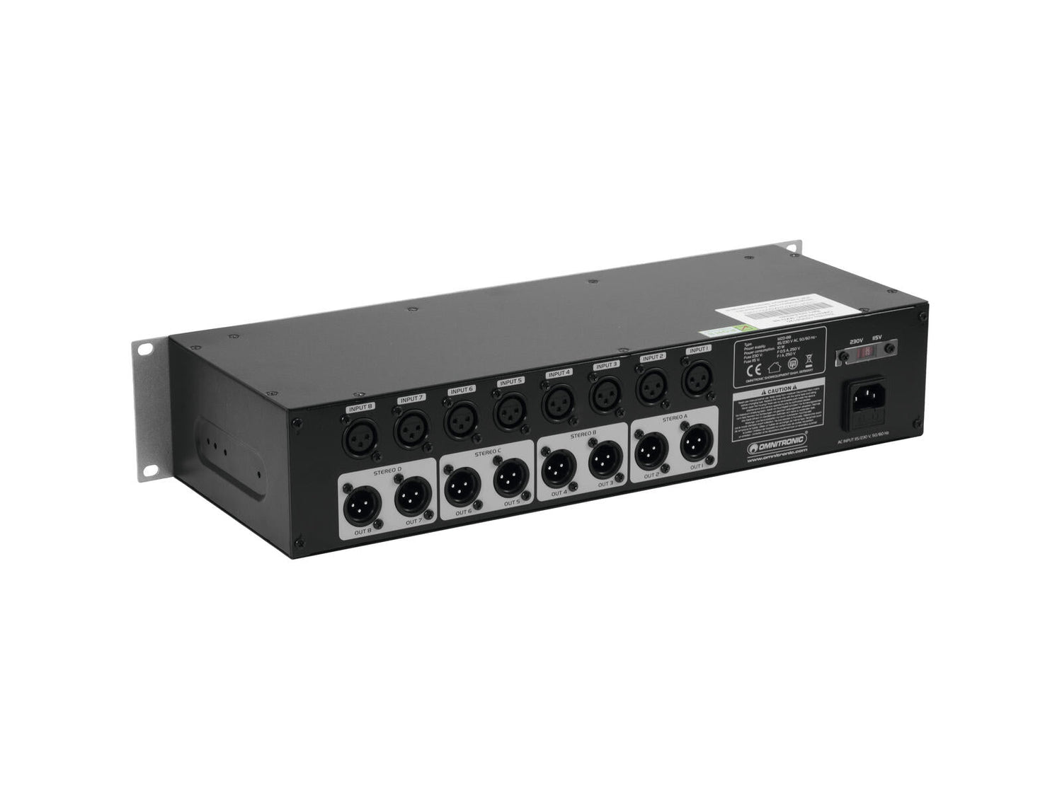 OMNITRONIC MZD-88 er en allsidig 8-kanals matrixmikser designet for profesjonelle multi-soner installasjoner.