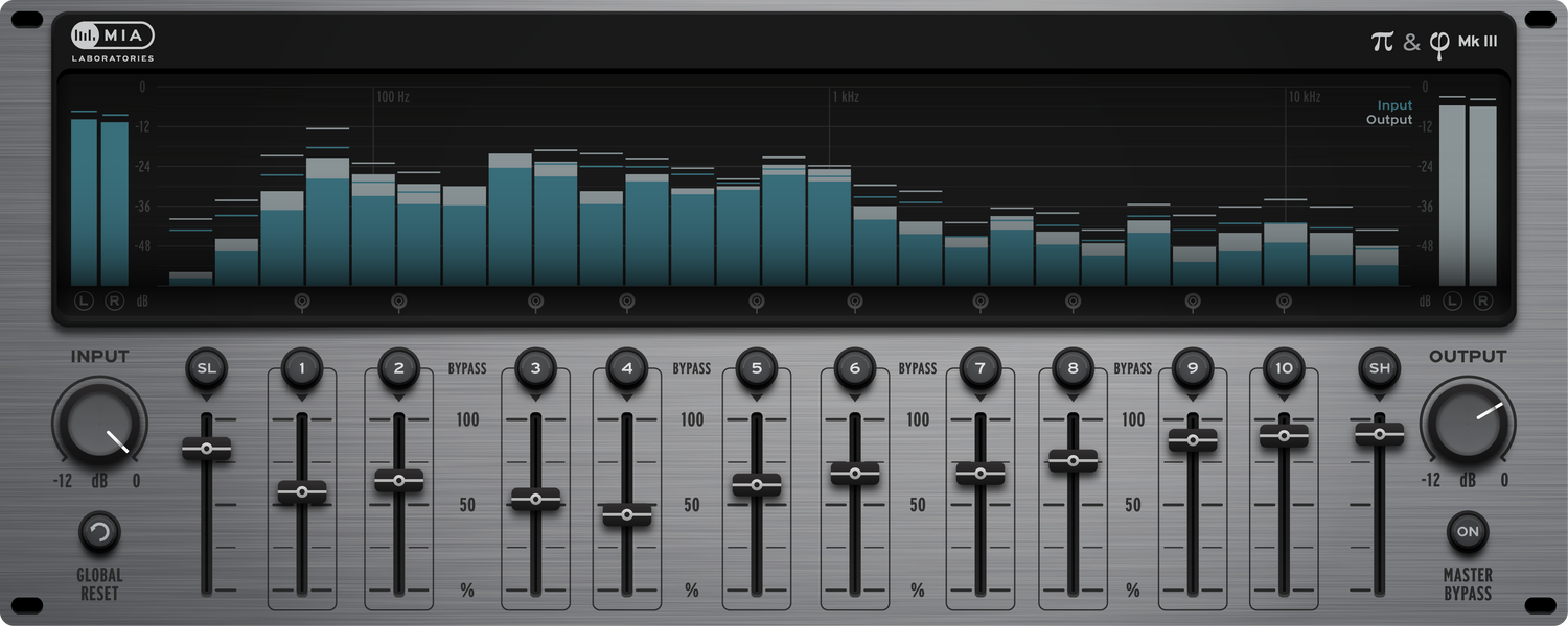Pi & Phi MkIII har 10 bånd som dekker frekvenser fra 80 Hz opp til 16 kHz, sammen med et “Super Low” og et “Super High” bånd for å dekke ekstremene i spektret.