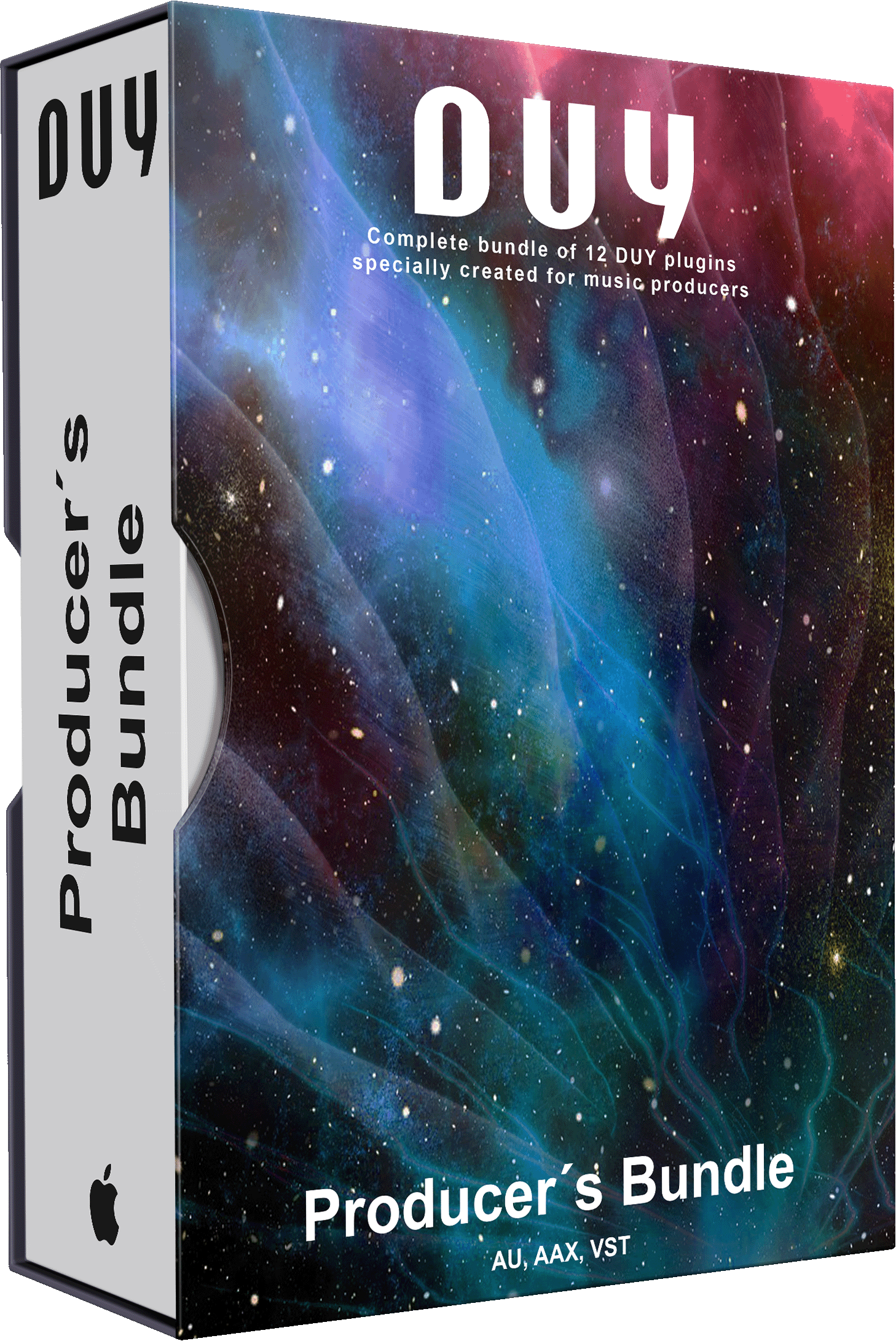 The DUY Producer's Bundle er en samling av eksepsjonelle høykvalitets plug-ins designet for 64-bit AAX, Audio Units, og VST formater. Denne omfattende pakken består av 12 bemerkelsesverdige plug-ins som garantert vil heve din lydproduksjon til nye høyder. Den inneholder 12 fantastiske høykvalitets plug-ins: LucidVerb, Dream Dynamics, Monster MIX, POWER, Analog BUS, DUY DaD Tape, DUY DaD Valve, DUY Deep Analog EQ, DUY Wide, DUY Silence, MAX DUY og DUY Shape.