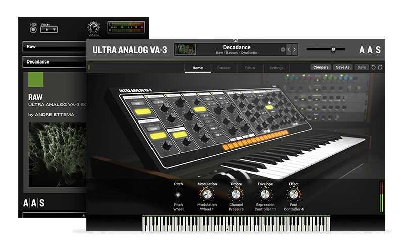 Ultra Analog VA-3 kan virkelig spille den slemme fyren. Raw er en samling av 100 lyder som viser denne mindre kjente siden av personligheten. Fra subtil varme til skrikende forvrengning, Raw er avhengig av den naturlige overdrive av Ultra Analog sine filtre og de innebygde effektene for å foreslå et overraskende variert sett av upolerte, grovkornede og skitne lyder. Ha det gøy og la deg selv gå opp til elleve!