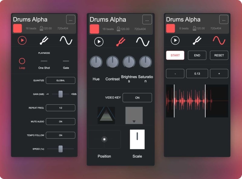 • Spill av fullt synkroniserte videoklipp: koble lydklipp til videopader • Modulerbar rutenett: opptil 8×8 pader • Importer dine egne video- og lydklipp til rutenettet • Lydredigerer: kvantisere, justere volum, dempe lyd • Videoredigerer: nyanse, kontrast, lysstyrke, metning, nøkkel, posisjon og forhold • Bildekontroll: videoprosjektmapping & master videoredigerer • Direkte utgang til en sekundær skjerm for liveopptredener • Spill inn din opptreden live i høy kvalitet MP4-video