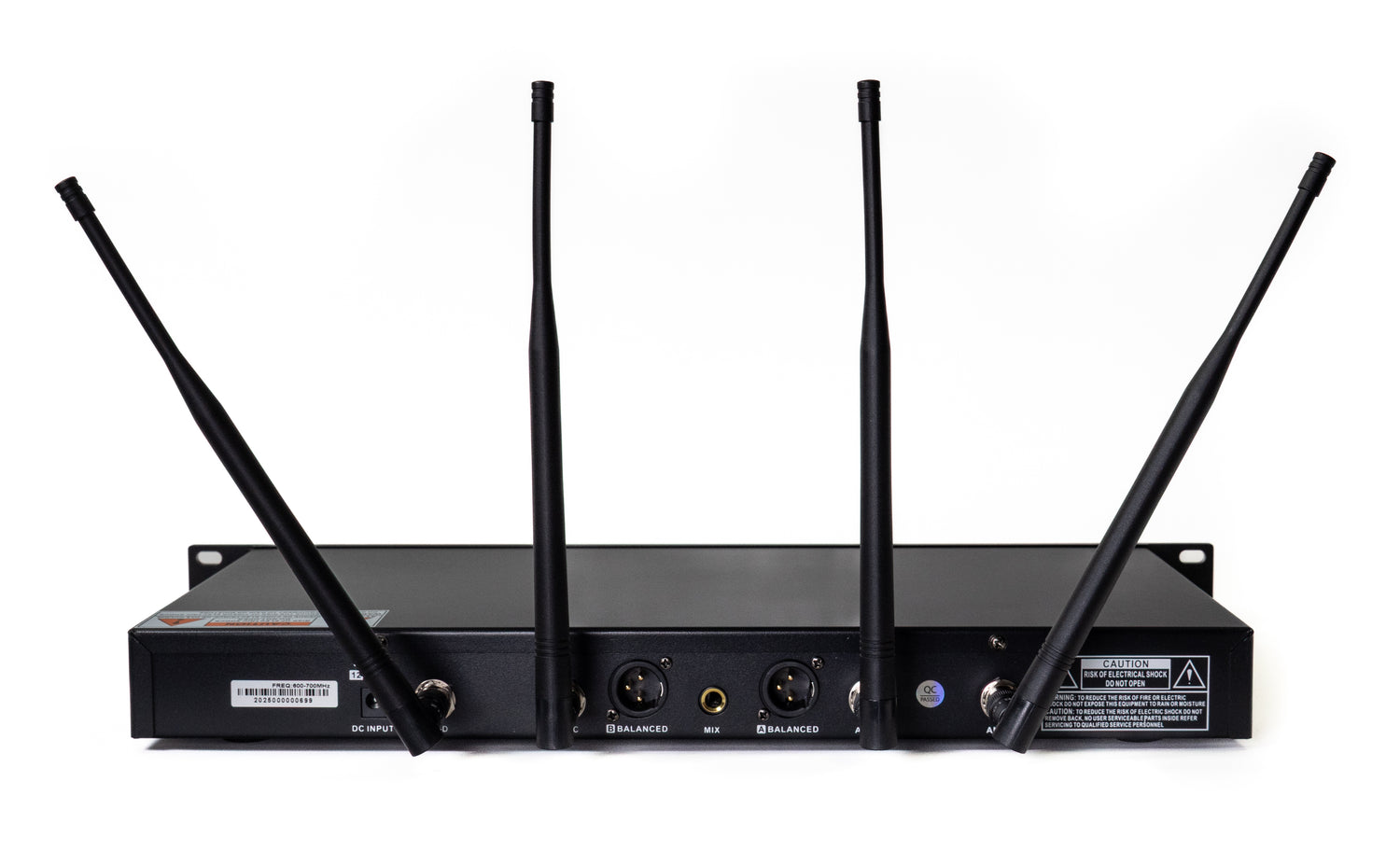 Profesjonell UHF trådløs mikrofon med 200 valgbare UHF-frekvenser, 4 antenner, SMT-kretsdiversitet, IR-skanning av frekvenser og en maksimal rekkevidde på opptil 200 meter – ideell for sceneshow og opptredener.