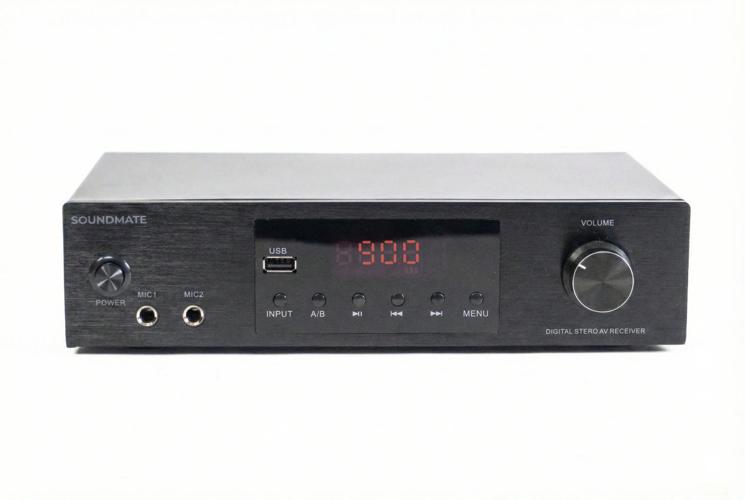 I dette bundle får du 1 sett SoundMate HBS-05 Reolhøyttalere & 1 SoundMate Hi-Fi forsterker m. Bluetooth