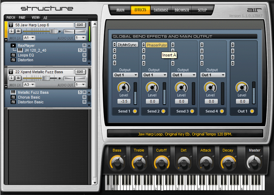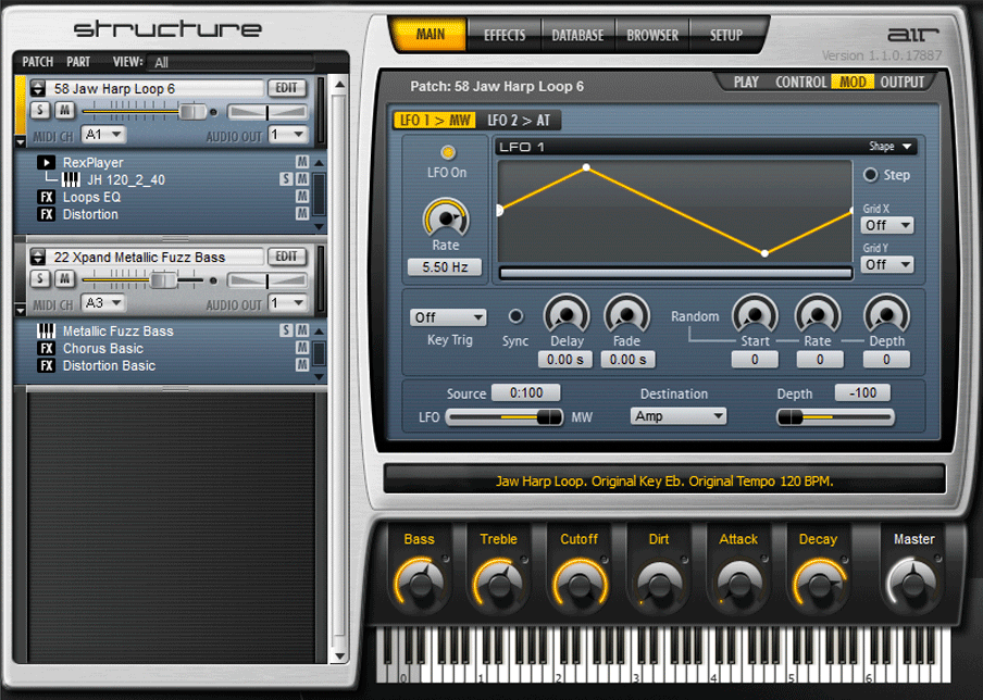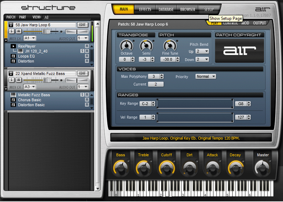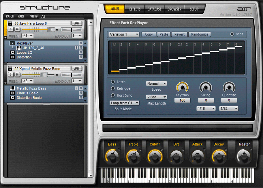 Structure er et multitimbralt instrument med et innebygd samplebibliotek og redigeringsverktøy som gjør det mulig å kombinere, lagre og redigere dine samples.