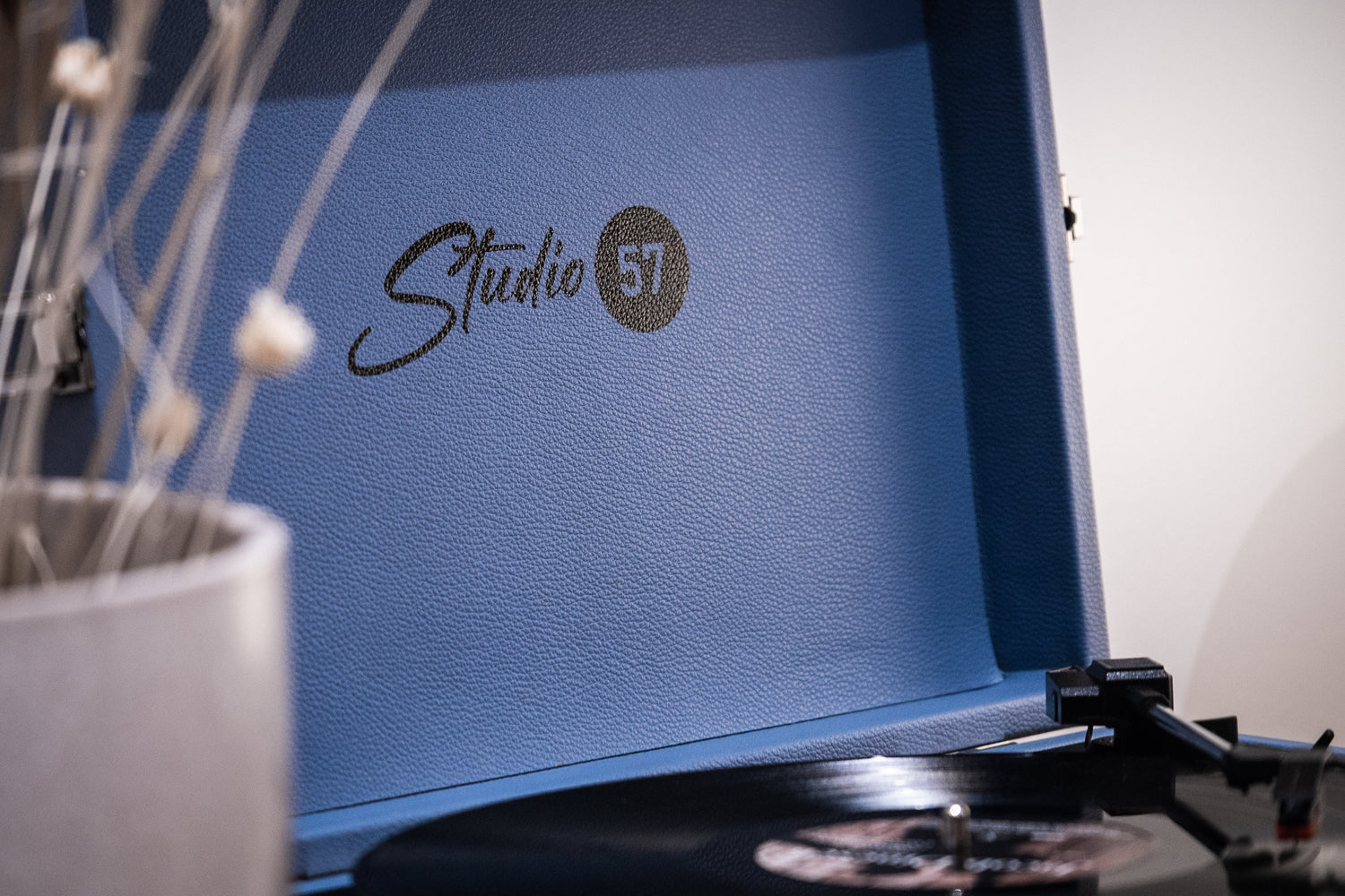 - Platespiller med innebygde høyttalere fra Studio 57!