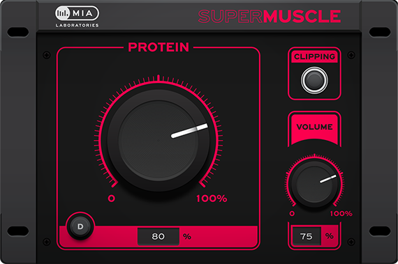 SUPER MUSCLE er en One-Knob stil plug-in som resulterer i en kombinasjon av Mia Labs Musiqual Red, Musiqual Blue, Musiqual Green plug-ins og et siste preg av Pi&Phi-magi.