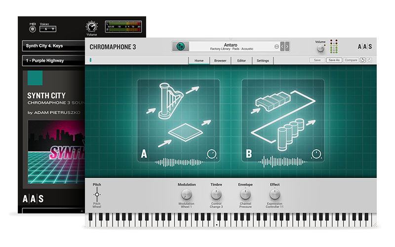 Original tekst: Resident sound designer Adam Pietruszko embraces retro-futurism with Synth City — a collection of 100 presets amalgamating the nostalgia of the 1980s’ vibe with Chromaphone’s modern twist.