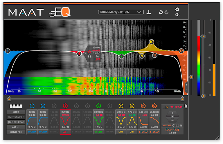 Ideen ble født om å gi ut dette mesterverket på nytt og gjøre det tilgjengelig som 64 bit i alle vanlige formater og for macOS. En avtale med Algorithmix ble inngått, og MAAT startet opp i midten av 2017. Algorithmix-fans hørte om dette og kontaktet oss, og sa: “…bare gjør det som det er; ingen ekstra, ingenting. Vi vil bare ha det tilbake i 64 bit og for Mac.” Det var oppmuntrende. Som en kraftbruker hadde Tischmeyer noen andre ideer angående brukergrensesnittet. Han ønsket å gjøre det mer fleksibelt og raskere å bruke, fordi det ikke finnes noe annet verktøy i masteringkjeden som en ingeniør bruker så mye tid på å sette opp. Resultatet? “Jeg tror vi har oppnådd det. Brukergrensesnittet tillater superrask oppsett og har en rekke unike funksjoner som hjelper med dette: Den positive og negative Contribution-funksjonen inkludert absolutt forskjell, den justerbare sonogrammet som gjør det enkelt å oppdage energipunkter du ønsker å rydde opp, og muligheten til å spille en note på pianoet du har i hodet og bare trykke den respektive frekvensen til den aktive bandseksjonen med ett høyreklikk er bare noen av de nye funksjonene. Det jeg også liker er at jeg har oversikt over alle seksjoner i motsetning til bare én seksjon om gangen.” For å unngå å ende opp med en merkelig seksjonsrekkefølge når man bruker mange filtre, har vi også lagt til SORT-knappen slik at seksjonene alltid er i stigende rekkefølge.