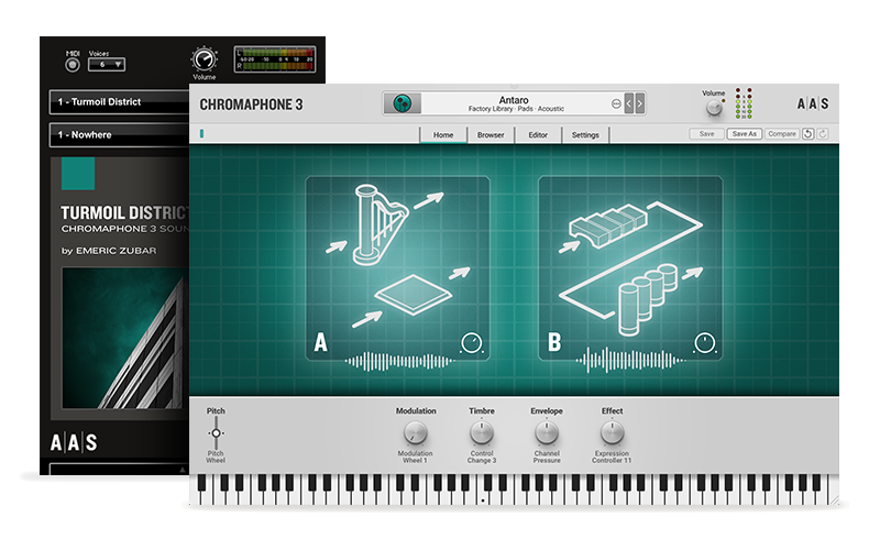 Original tekst: AAS sound designer newcomer Emeric Zubar a.k.a. BLAKE presents Turmoil District—a collection of 101 presets exhibiting the emotional and ominous side of Chromaphone. Turmoil District gets you everything you need to explore the dark and sad atmosphere of Trap, Cloud Trap, RnB, Hip Hop, and even ambient music. While being sonically rich-sounding, this sound pack highlights the dreamy and haunting vibe needed for those genres. With its vast collection of kicks, snares, basses, hi-hats, pads, and keys. Turmoil District's presets are specifically designed to create vibrant beats and take your music to its climax.