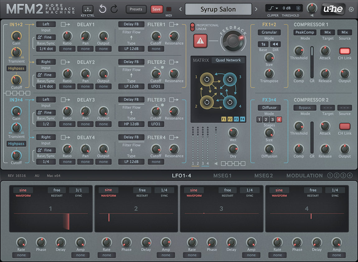 MFM2 er vår over-the-top digitale delay plug-in. Du kan lage alt fra subtile teksturerte ekkoer til enorme romklanger, fra ville tonale trinn på en pad til rytmisk dekonstruering av et trommespor. Som en vanlig delay tilbyr MFM2 allerede så mye kontroll og inspirasjon som mulig, mens de avanserte funksjonene i versjon 2.5 åpner opp for bredere horisonter. Mer feedback, mer kontroll, mer inspirasjon!