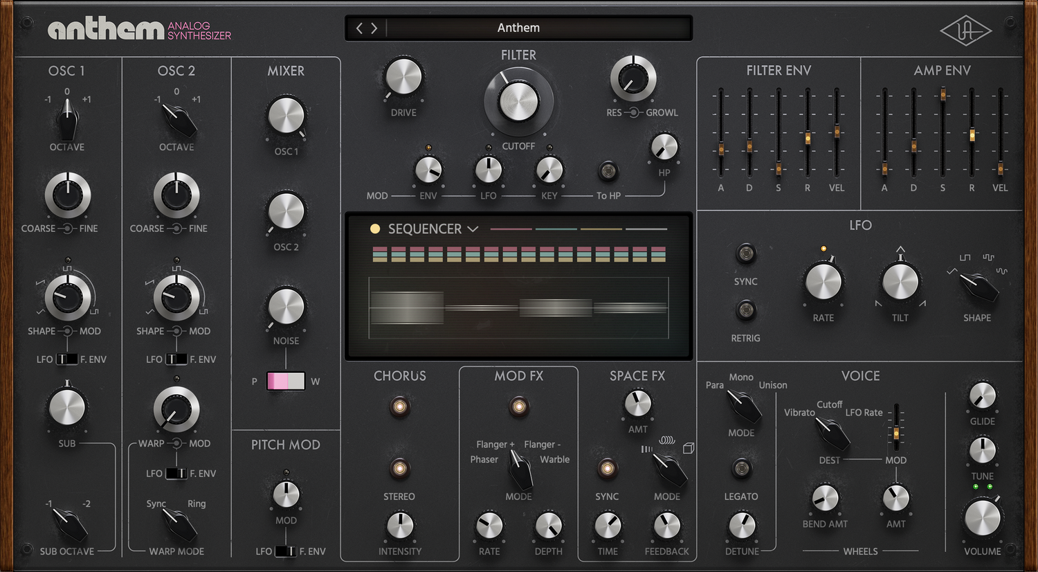 Med Anthem hentet Universal Audio inspirasjon fra de mest ettertraktede mono-synthene fra svunne tider, og de gikk videre for å skape noe helt nytt. Med dristige, "[perfekt uperfekte" analoge teksturer og vibey paraphoniske akkorder - vil du tilføre energi og følelser til dine moderne produksjoner.