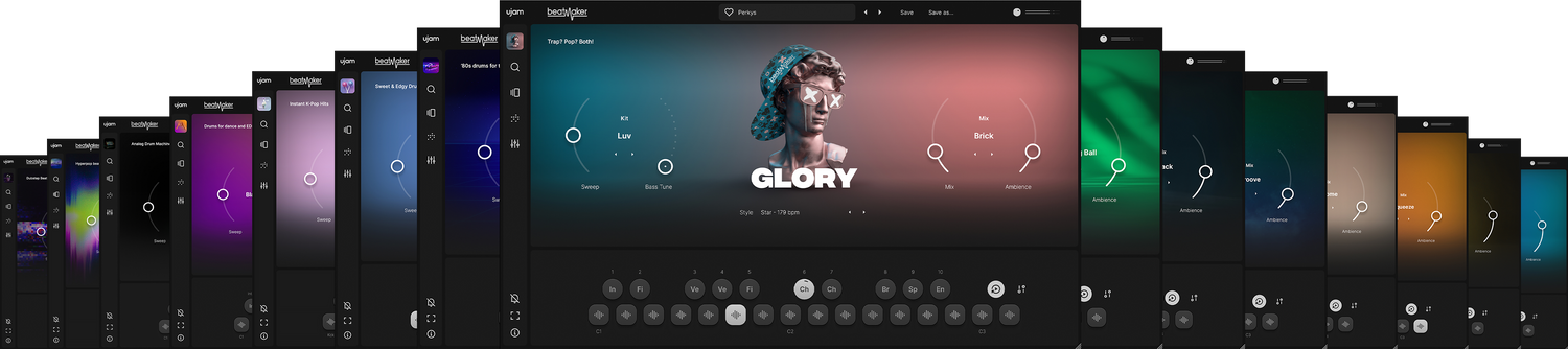 Hver Beatmaker kommer lastet med 10 sjanger-spesifikke trommesett, håndlaget for den stilen. Bare last inn et kit, og du er klar til å produsere med profesjonell lydkvalitet.