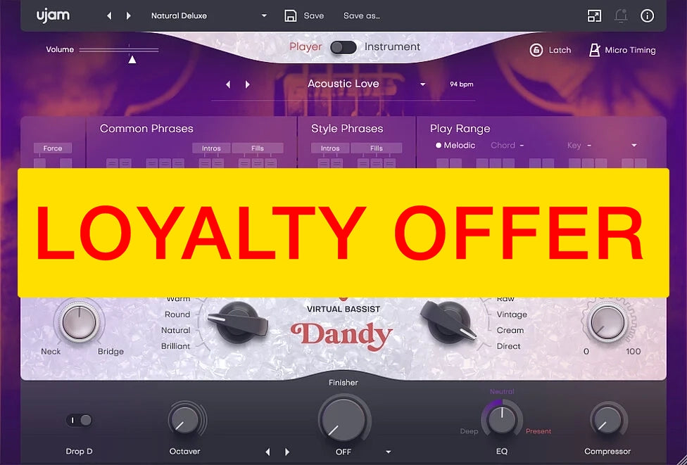 DANDY er perfekt for alle produsenter på alle ferdighetsnivåer. De feilfrie kontrollene sikrer at nybegynnere får flotte resultater som ikke høres ut som kjedelige, repeterende sløyfer. Dyktige keyboardspillere kan enkelt omgå de virtuelle musikeren funksjonene og spille bassdelene akkurat som de ønsker. Alle får flott bass i produksjonene sine!