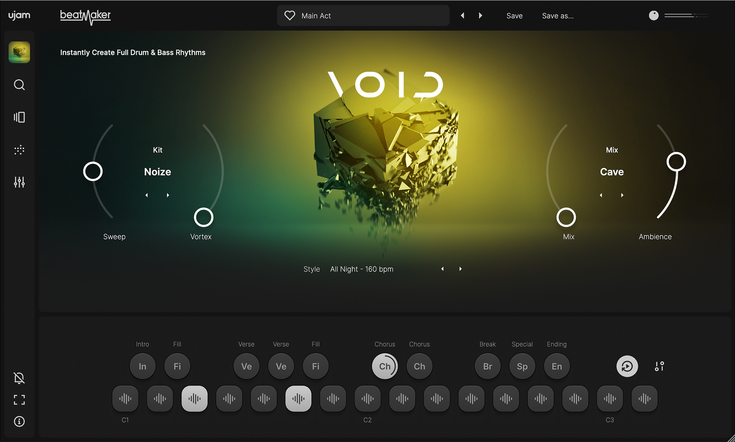 Hver Beatmaker kommer lastet med 10 sjanger-spesifikke trommesett, håndlaget for den stilen. Bare last inn et kit, så er du klar til å produsere med proff-kvalitet lyder.
