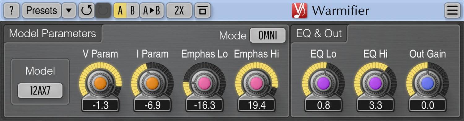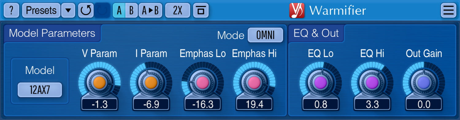 Warmifier kan brukes både på komplette mikser og på individuelle instrumentspor. Du har flere parametere til disposisjon som lar deg kontrollere styrken og fargen på effekten. I tillegg har du flere rørtyper å velge mellom. Hver rørtype tilbyr en forskjellig overordnet farge.