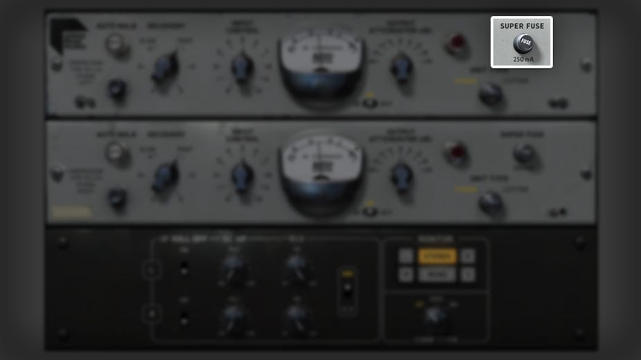 Vil du at RS124 skal bli mer aggressiv? Super Fuse-modus matcher slipp-tid med angrepstid, og skaper en brutal kompresjonskarakter som høres ut som den “kjemper mot seg selv.” Prøv dette på tromme-bussen din for fullstendig romødeleggelse, eller for å få beatene dine til å hoppe ut av høyttalerne.
