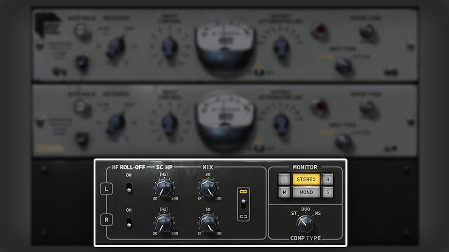 For moderne miksingsevner har det blitt lagt til funksjoner til den originale RS124: Skulpturer lyden din med mid-side behandling, i tillegg til stereo, dual mono, og mono. Rull av høye frekvenser for å jevne ut lyden. Bruk Sidechain Highpass for å fjerne lave frekvenser fra bass/kick sidechain. Juster inn den perfekte blandingen med Dry/Mix.