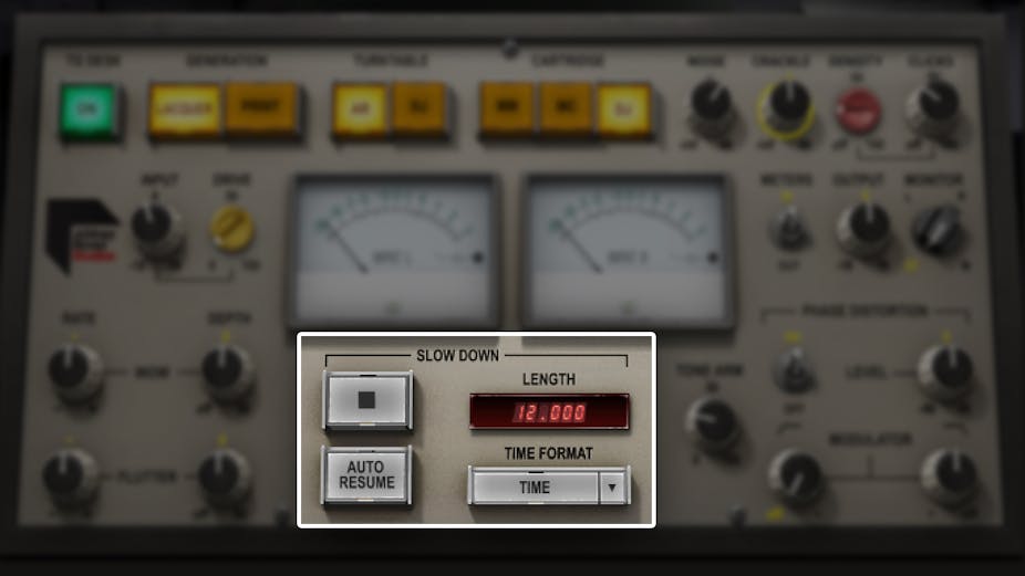Når autentisitet er avgjørende, legg til litt eller mye av vinylen sine imperfeksjoner: platespiller rumling, knitringer, klikk, wow, flutter, og til og med faseforvrengningen som skjer når stiften beveger seg mer skrått i de indre sporene.