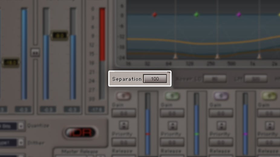 Separér båndene for maksimal isolasjon, eller reduser separasjonen slik at energi fra ett bånd kan påvirke nærliggende bånd. Du kan til og med eliminere separasjonen helt, for konvertering til en bredbånds limiter med lineær-fase EQ.