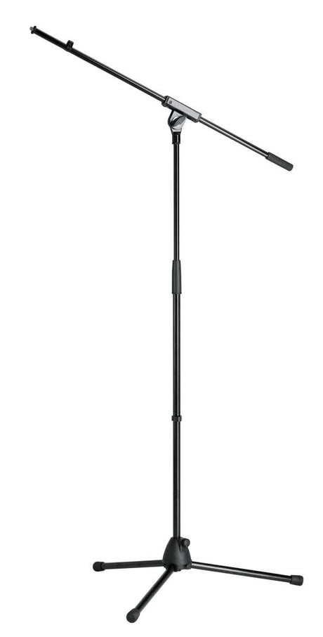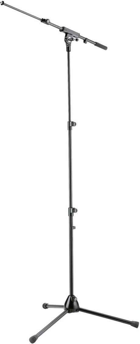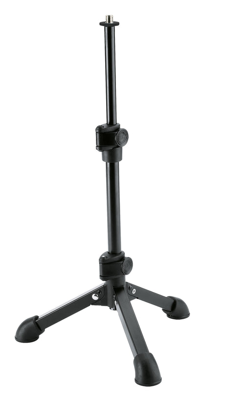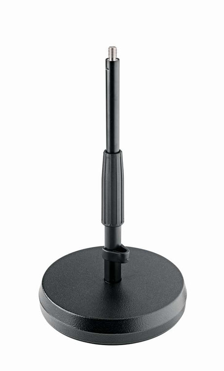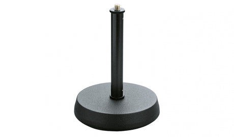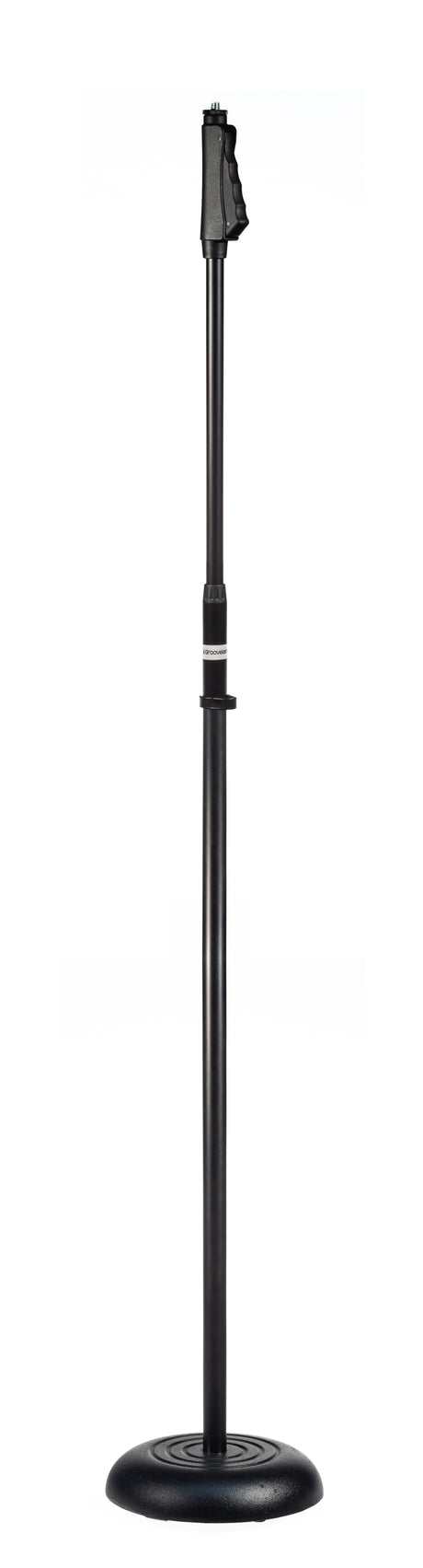 Lad os starte fra bunden av en mikrofonholder og se på, hva den står på. Vi tilbyr både trebente mikrofonholdere og mikrofonstativer med rund fot. Begge typer har ofte et støtabsorberende belegg på undersiden, som skaper en liten avstand mellom stativet og underlaget. På den måden overføres de vibrasjoner, som oppstår, når du danser og hopper på scenen, i videst mulig omfang ikke til mikrofonstativet. Mikrofonstativer med rund fot er spesielt velegnet til sangeren, som står på scenen fordi de ikke optar så mye gulvplass og man ikke så lett faller over de tre ben. Den mest utbredte typen av mikrofonholdere er dog mikrofonstativene med tre føtter, som kan brukes i et vell av forskjellige sammenhenger. Ofte kan benene foldes sammen akkurat som resten av stativet, så det er enkelt å oppbevare og transportere.