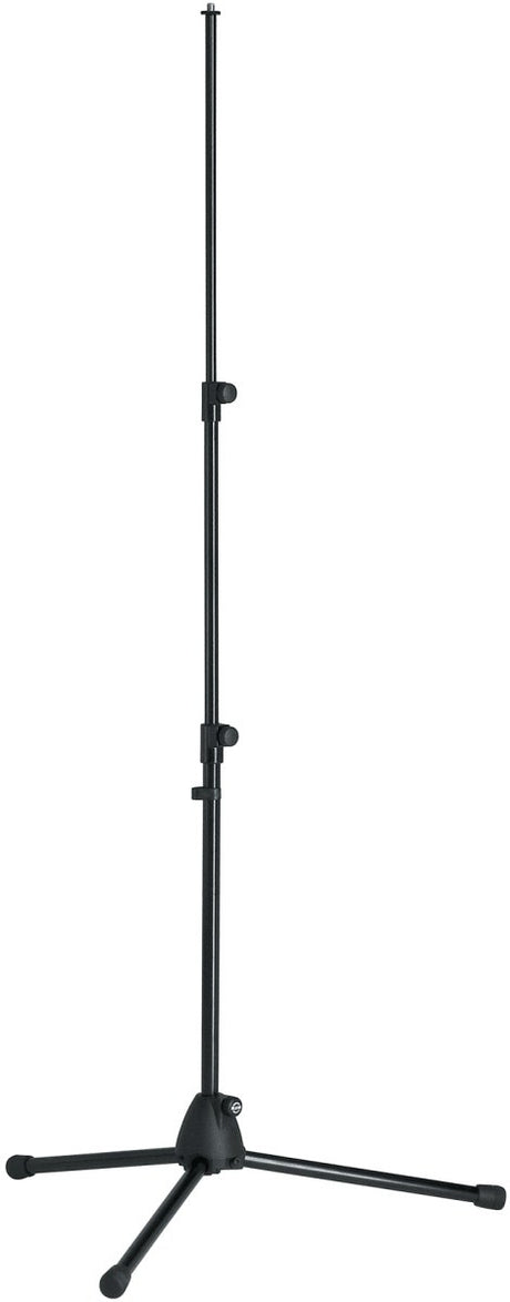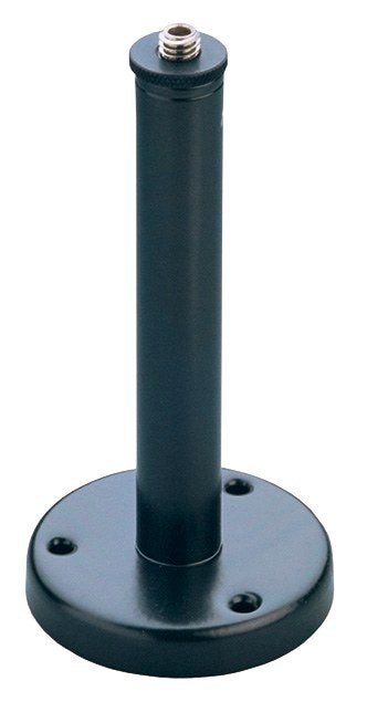 Lad os starte fra bunden av en mikrofonholder og se på, hva den står på. Vi tilbyr både trebente mikrofonholdere og mikrofonstativer med rund fot. Begge typer har ofte et støtabsorberende belegg på undersiden, som skaper en liten avstand mellom stativet og underlaget. På den måden overføres de vibrasjoner, som oppstår, når du danser og hopper på scenen, i videst mulig omfang ikke til mikrofonstativet. Mikrofonstativer med rund fot er spesielt velegnet til sangeren, som står på scenen fordi de ikke optar så mye gulvplass og man ikke så lett faller over de tre ben. Den mest utbredte typen av mikrofonholdere er dog mikrofonstativene med tre føtter, som kan brukes i et vell av forskjellige sammenhenger. Ofte kan benene foldes sammen akkurat som resten av stativet, så det er enkelt å oppbevare og transportere.