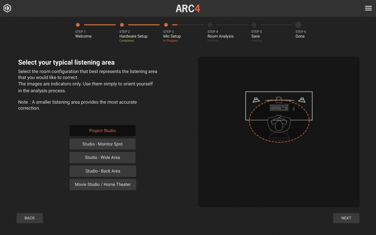 - ARC studio analyserer og måler lytterommet ditt og justerer lyden deretter