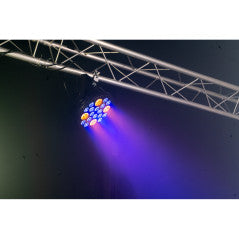 - Flere betjeningsmuligheter: Velg mellom automatisk, master-slave, DMX (12 kanaler), lydstyrt eller fjernbetjeningsoperasjon.