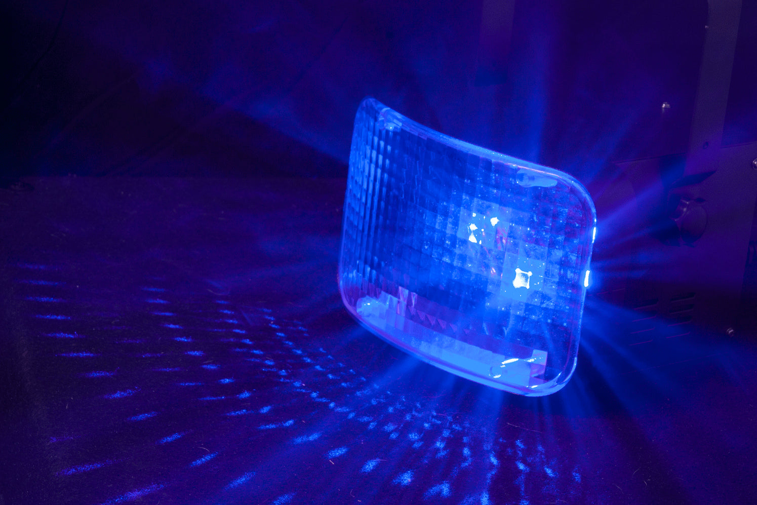 - Fyller rommet med lysstråler i skiftende farger.