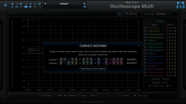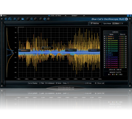 Blue Cat's Oscilloscope Multi er en unik flere spor sanntids bølgeform renderer og sammenligner: den lar deg visualisere innholdet av flere lydspor på samme skjerm og sammenligne dem takket være sin X-Y visning.