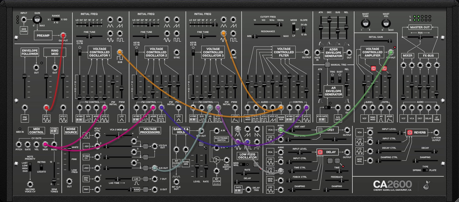 Cherry Audio CA2600 er en kraftig, selvstendig duofonisk synthesizer inspirert av den banebrytende ARP 2600 synthesizeren. Hvert aspekt av originalen, fra de quirky oscillatorbølgene, til det kraftige ladder-filteret, til den eksterne audioinngangen og preamp-seksjonen, ble modellert med enorm presisjon. Selv om den har lignende funksjonalitet, har den blitt gjennomtenkt oppdatert for økt fleksibilitet - med semi-normaliserte patchkabler, integrerte effekter, og ingen skjulte vinduer eller menyer i lydveien, leverer CA2600 en enestående hands-on, “alt rett foran deg, akkurat nå!,” vintage synthesizeropplevelse som ingen annen.