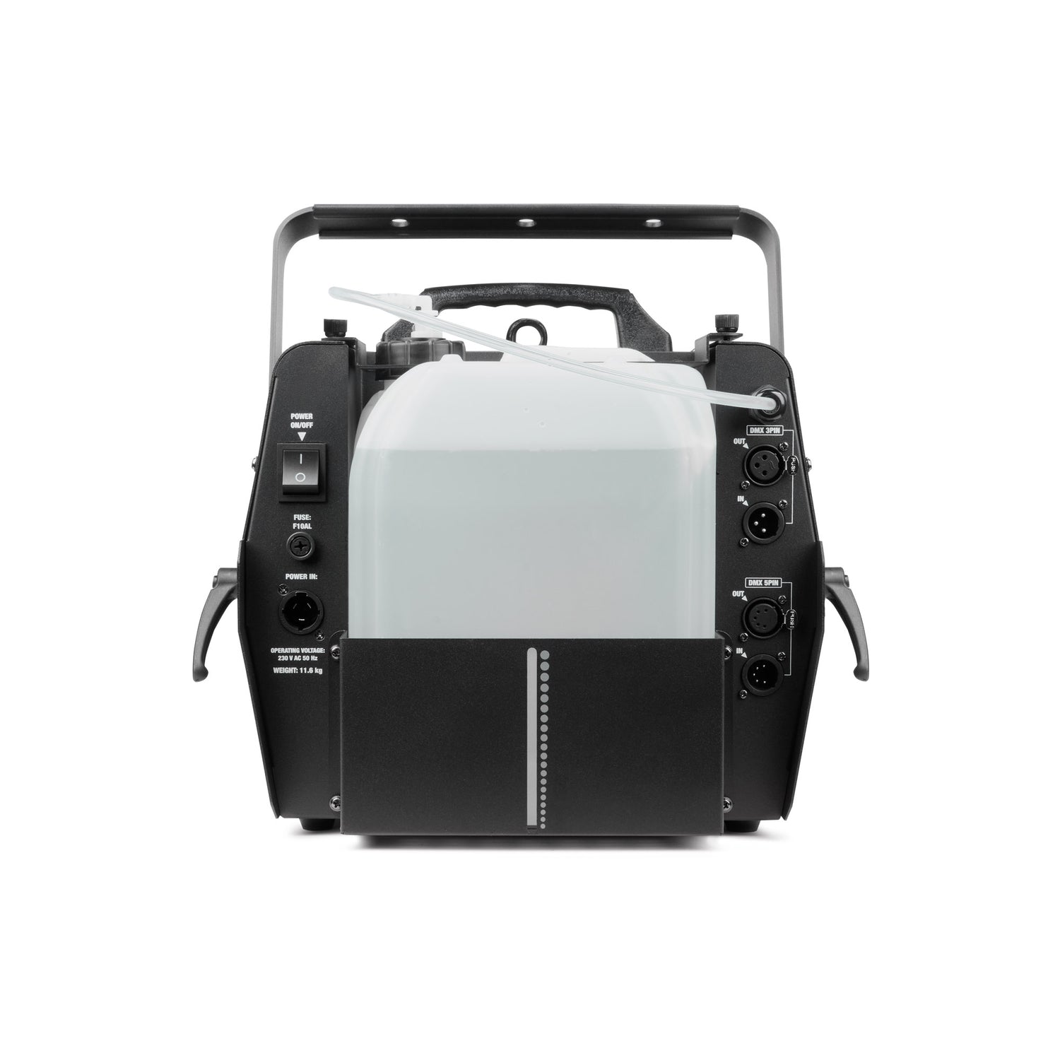 INSTANT HAZE 1400 G2 kan styres i 2-kanals modus via DMX og brukes som en standalone-enhet. Den er utstyrt med 3- og 5-pins DMX-innganger og -utganger og har et robust design med en åpning for væskekanner opptil 5 liter. Enheten er beskyttet mot overoppheting.