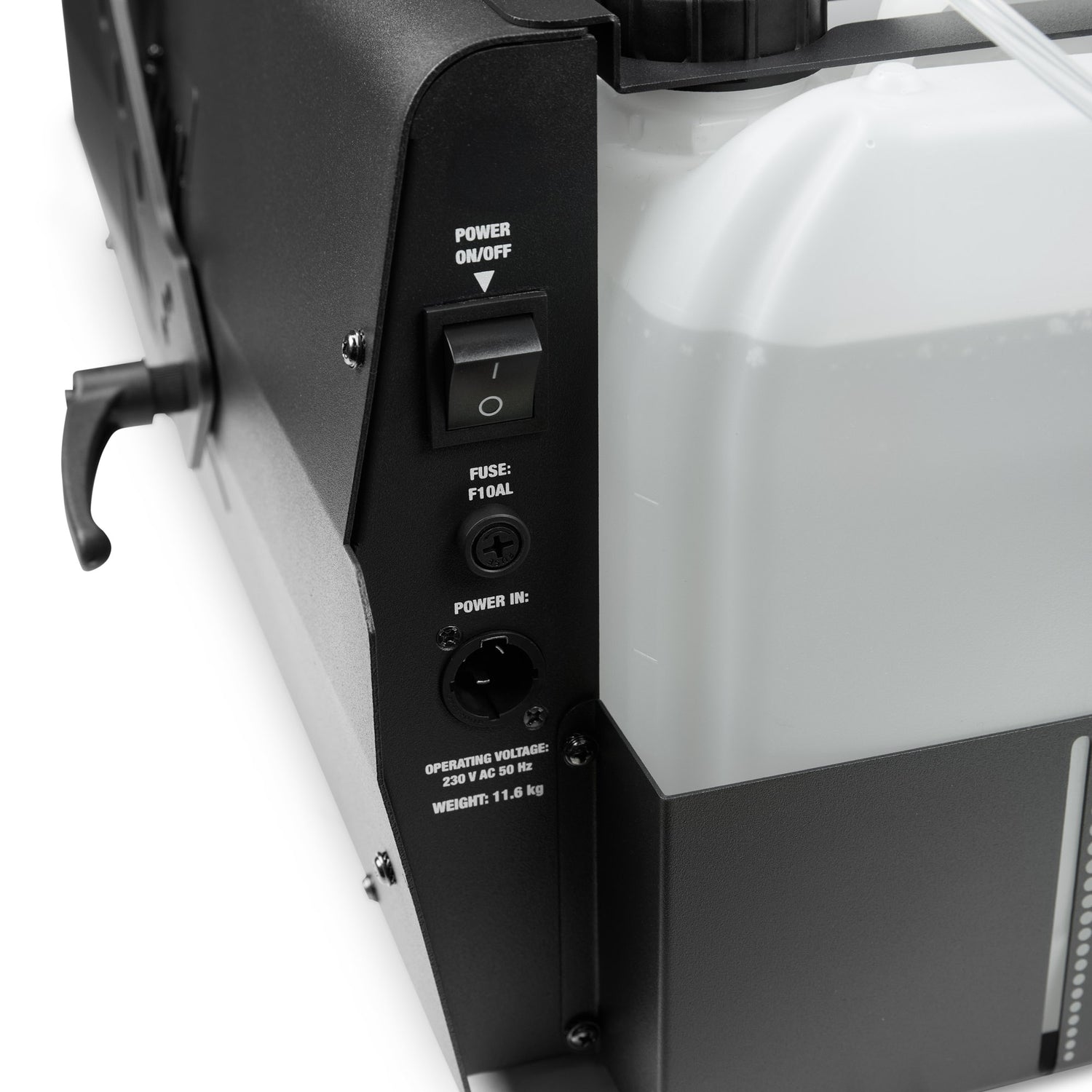Denne svært effektive, mikroprosessorstyrte hazer-en har et slitesterkt fordampningsrør i austenittisk rustfritt stål og et automatisk selvrensingssystem som forhindrer avleiringer og minimerer vedlikeholdet. Damp-/haze-utgangen kan justeres trinnløst uten gjenoppvarming og – i likhet med viftehastigheten – i 1 %-intervaller for scener og rom i alle størrelser.