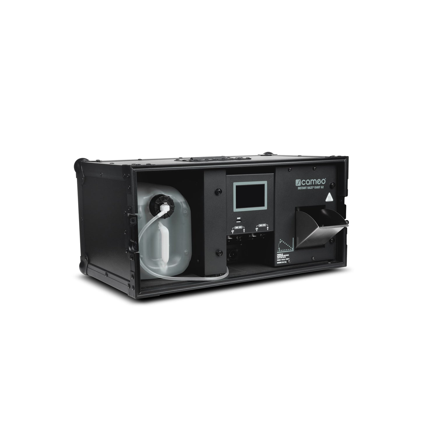 Takket være det robuste tourcase-kabinettet er INSTANT HAZE 1500 G2 fra Cameos Instant-serie utviklet for krevende turnébruk. Med et maksimalt væskeforbruk på kun 9 ml per minutt, en ekstremt kort oppvarmingstid på under ett minutt og ultrasv stillegående drift er den perfekt til TV- og filmproduksjoner, moteshow, livearrangementer og mobile diskoteker.