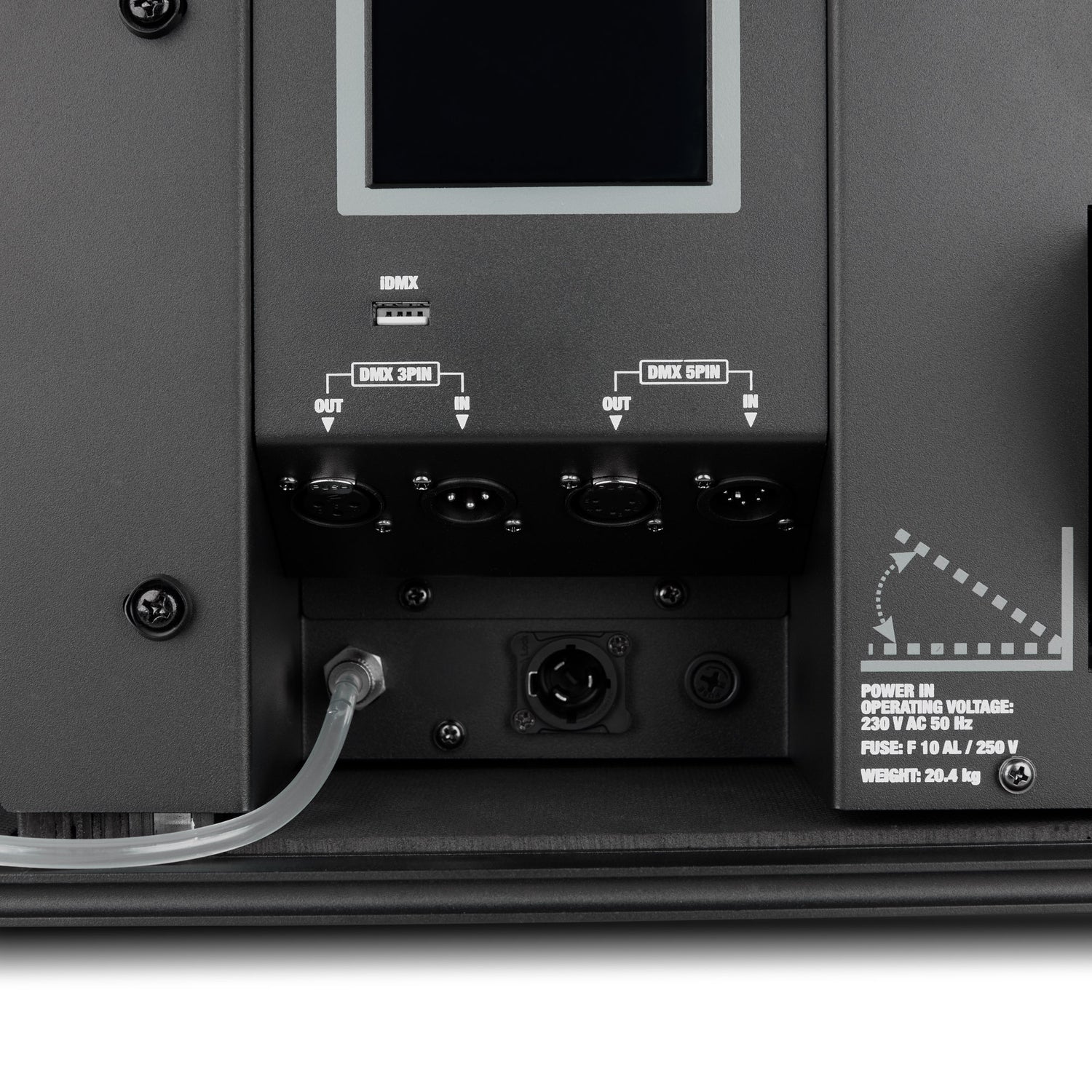 Andre generasjon av INSTANT HAZE 1500 G2 er optimalisert for enda mer komfortabel håndtering: Takket være det ekstra håndtaket på toppen er transport og plassering av enheten enda enklere. Det moderne touchdisplayet sikrer spesielt intuitiv betjening direkte på enheten. I tillegg har hazer-en nå en avtakbar powerCON TRUE1-tilkobling for maksimal fleksibilitet og sikkerhet i strømforsyningen.