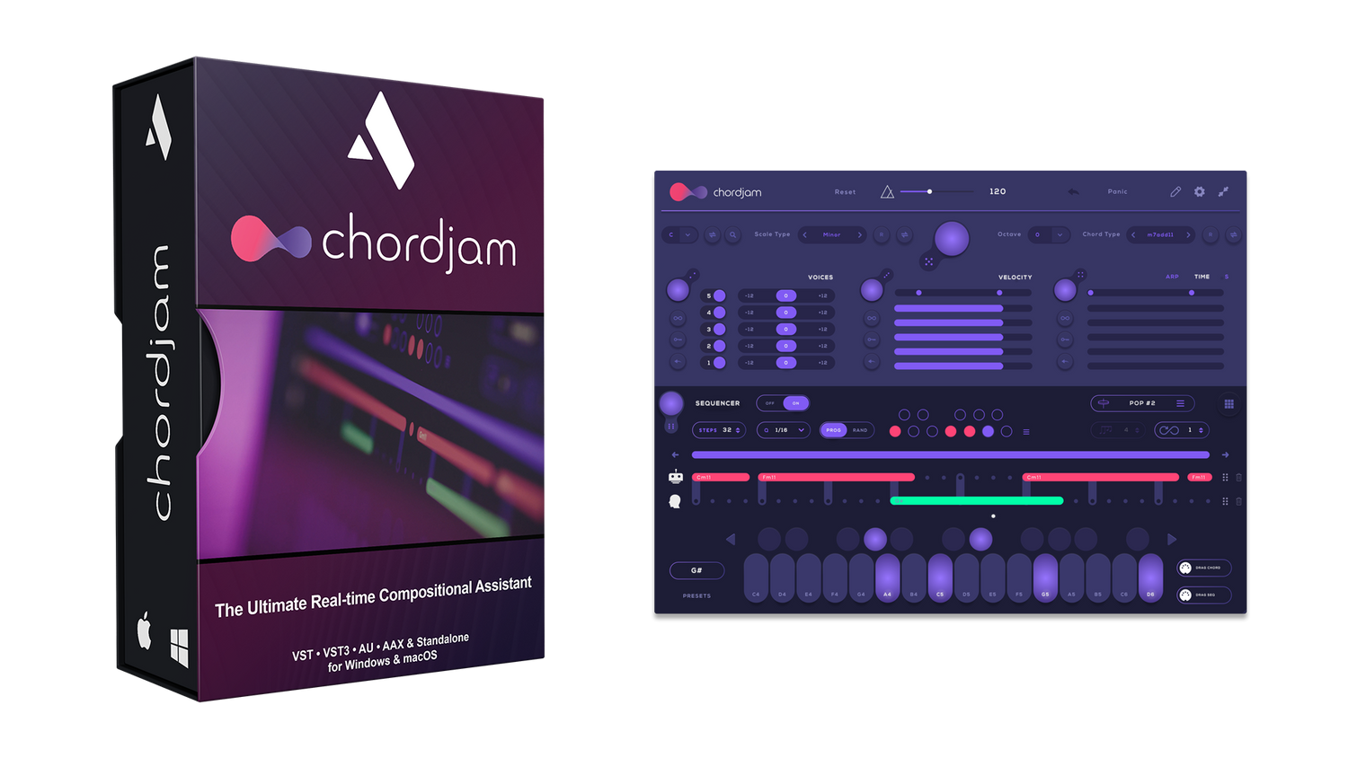 Chordjam er en innovativ plug-in og frittstående applikasjon som bygger akkorder og progresjonsmønstre gjennom intuitiv brukerstyrt randomisering.
