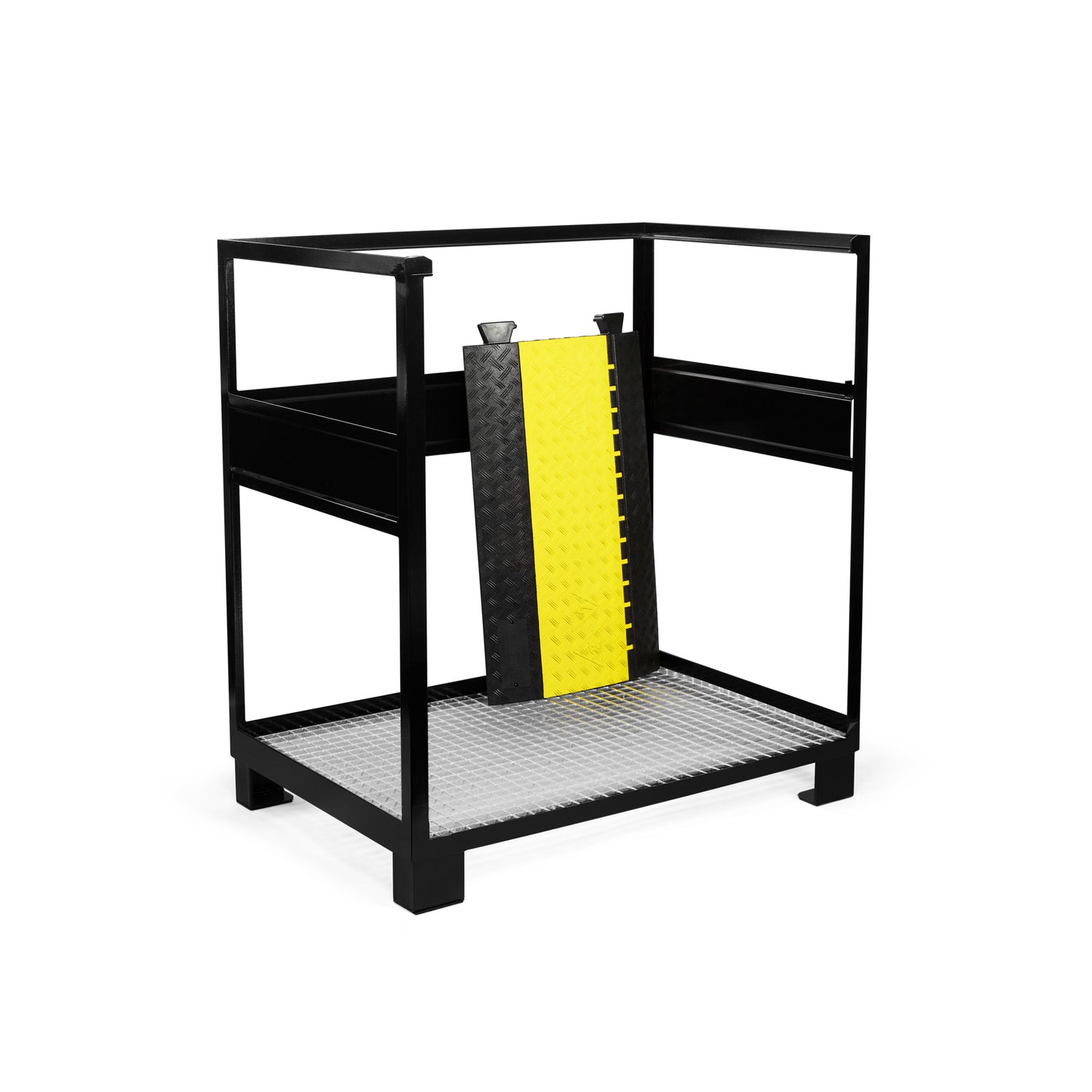 Den robuste kassen består av en slank og stabil sveiset stålkonstruksjon i standard europalle-dimensjoner. Bunnen er utstyrt med et galvanisert stålgitter som gjør det enkelt å rengjøre kabelbeskyttere i kassen.